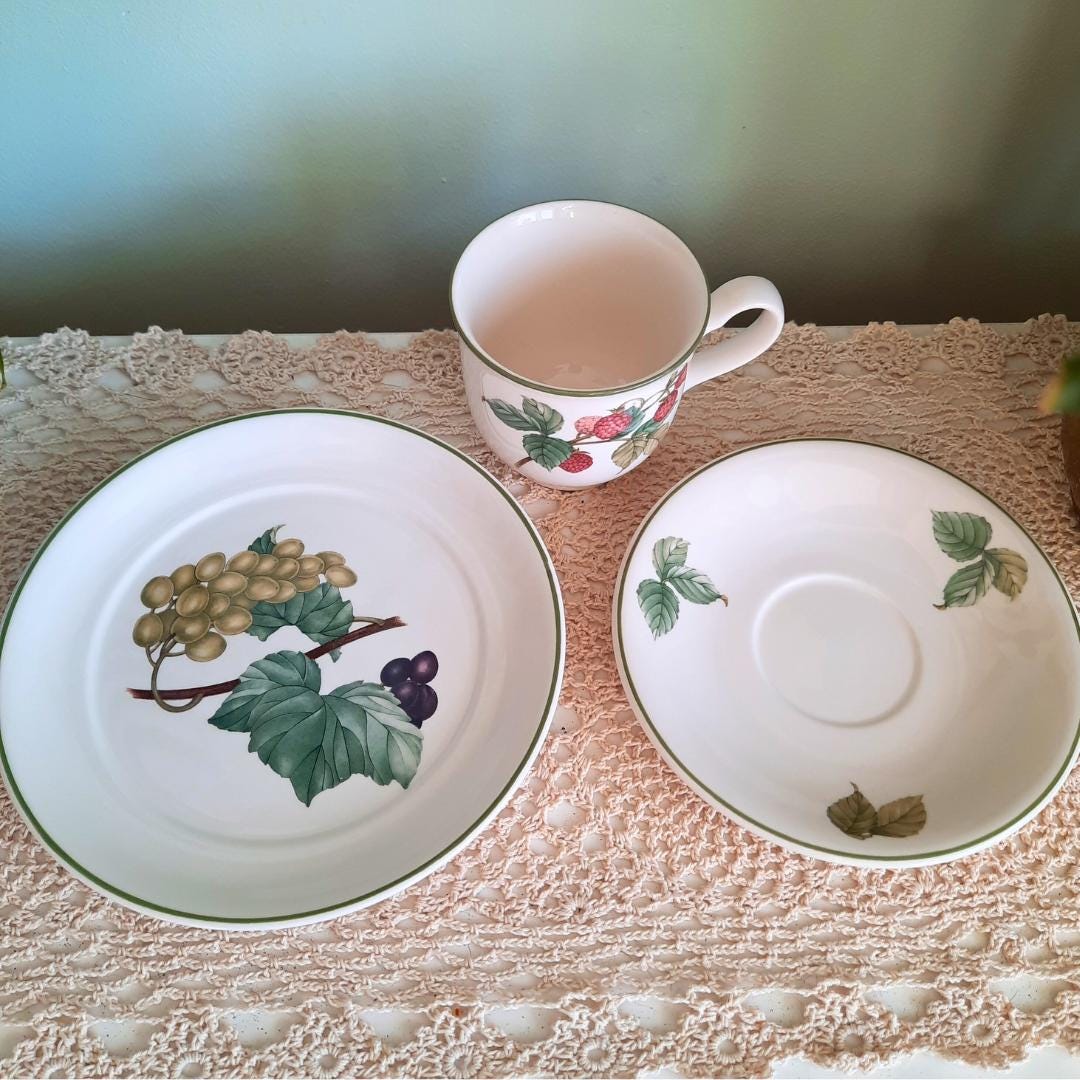 Kelcraft Designed By Noritake Tea Set Trio Paradise Pattern C 1980's Excellent Condition, Retro Tea Party Fruits Pattern.