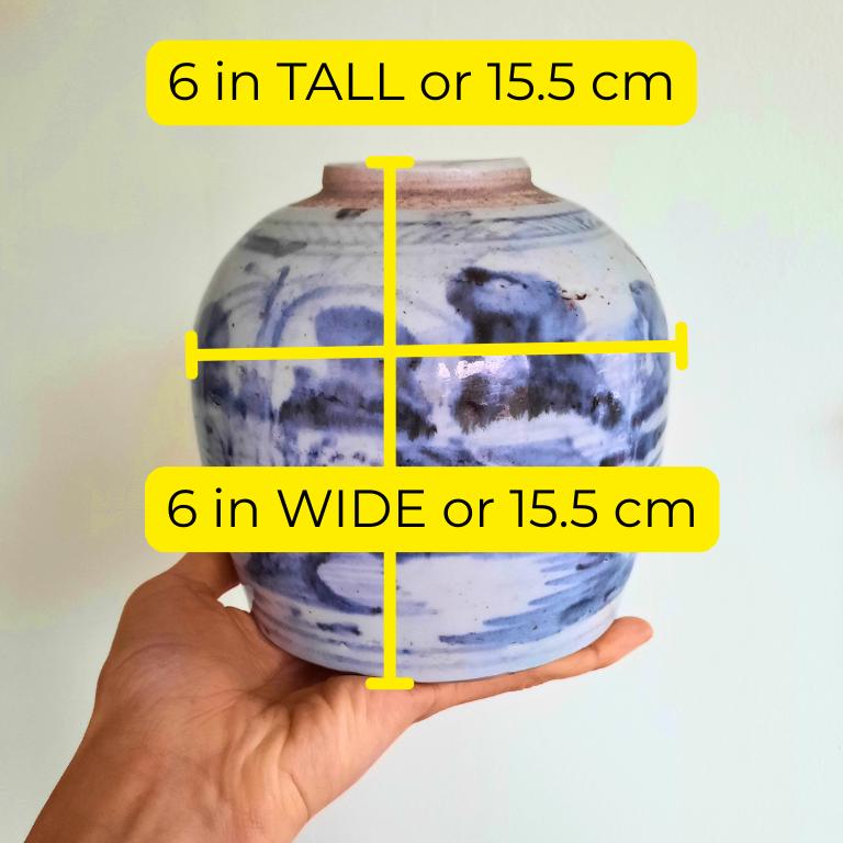 Antique 19th Century Qing Dinasty Chinese Provincial Stoneware Ginger Jar With Hand-Painted Landscape River Scene 6'' Tall