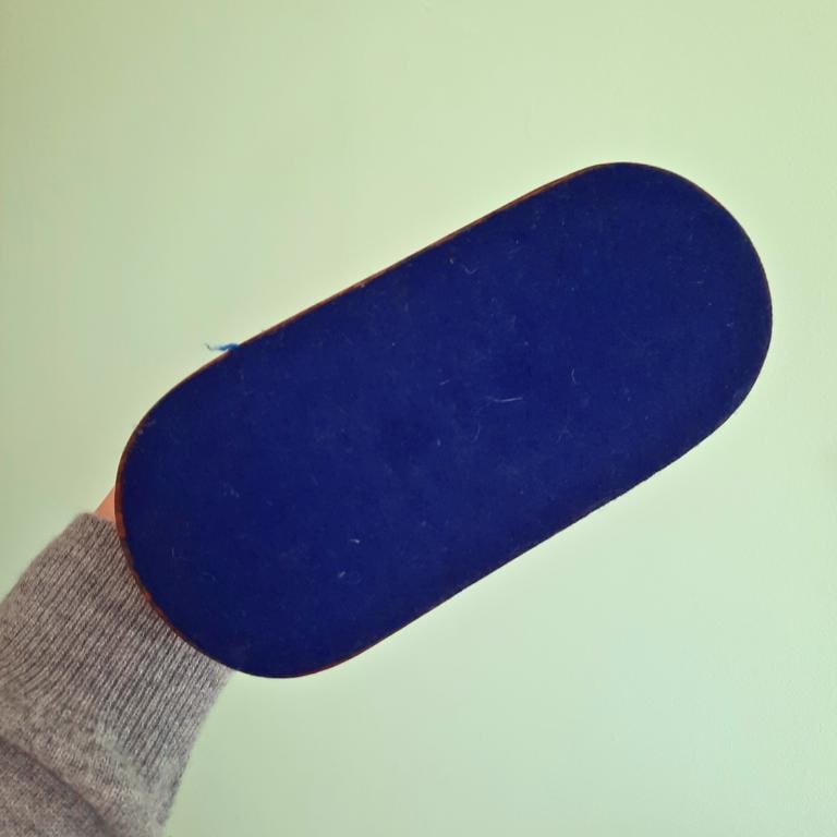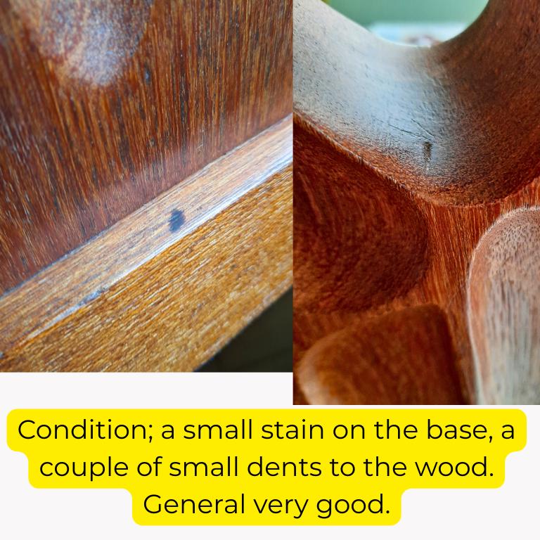 The sculpture is in good condition with a small stain on the base and a couple of small dents on the wood, but overall very good.