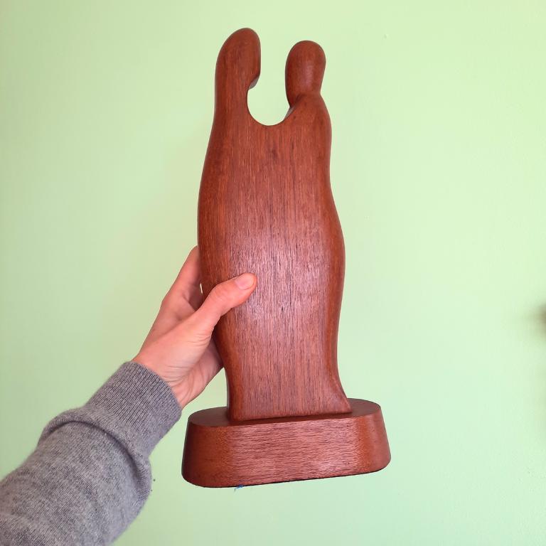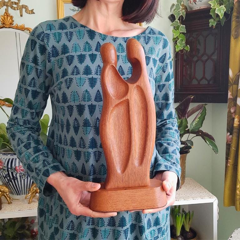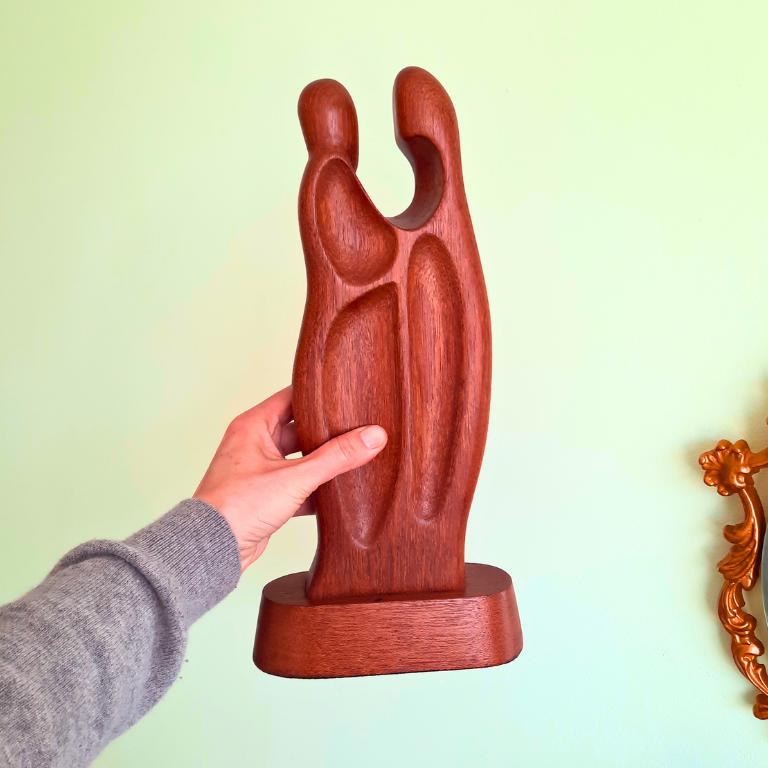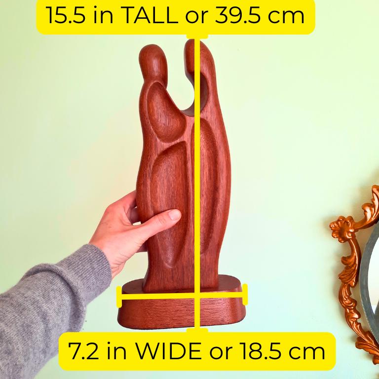 Tall MCM Teak Wood Sculpture Of A Couple Embracing Each Other 15.5''
