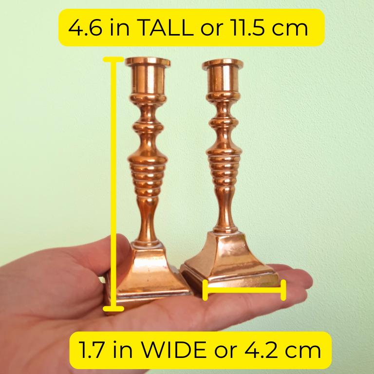 Antique Small Solid Pair Of Brass Candle Stick Holders Beehive Stem C 1910's. 4.8 In Tall