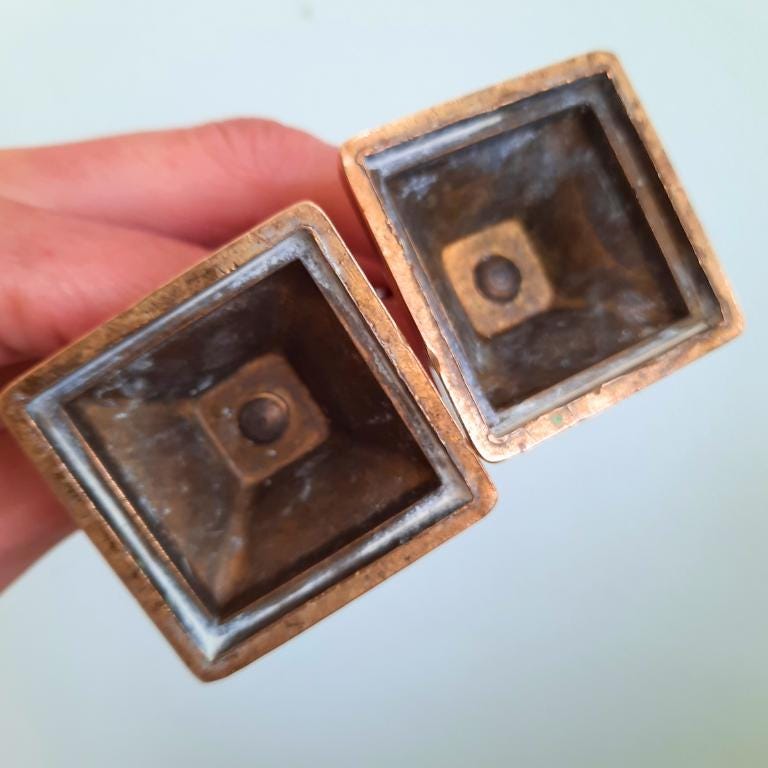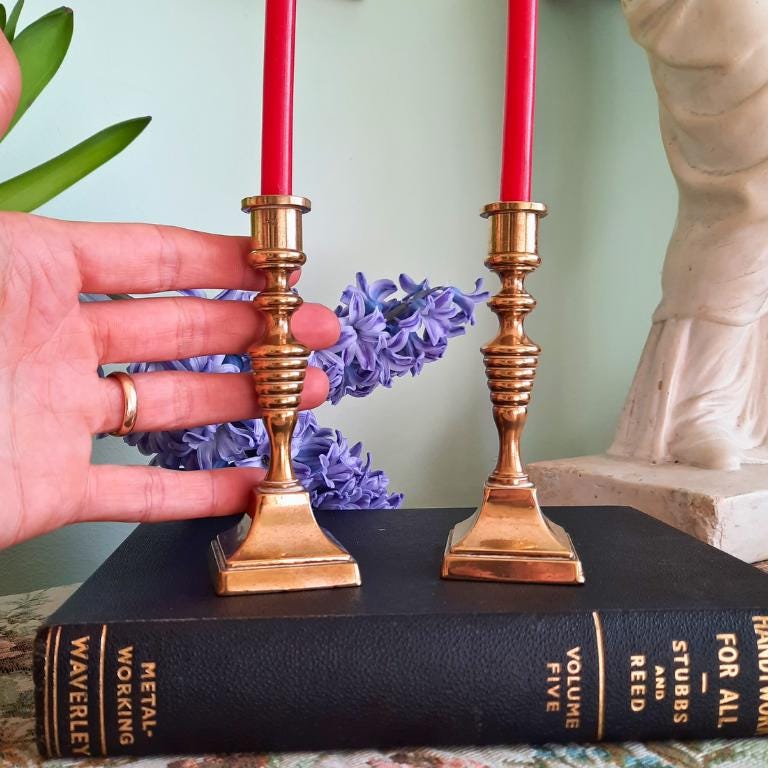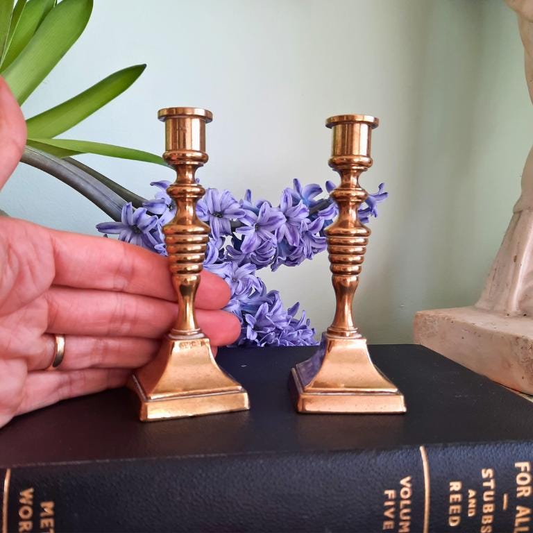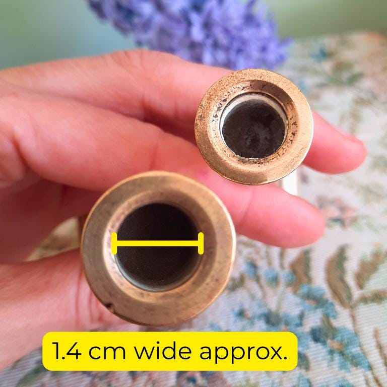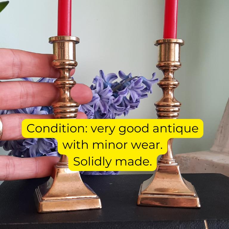 Beautiful pair of truly antique and solid brass candleholders that will make a wonderful addition to any quality interior or collection. Also a vintage, beautiful and sustainable gift for the home that will be treasured forever!