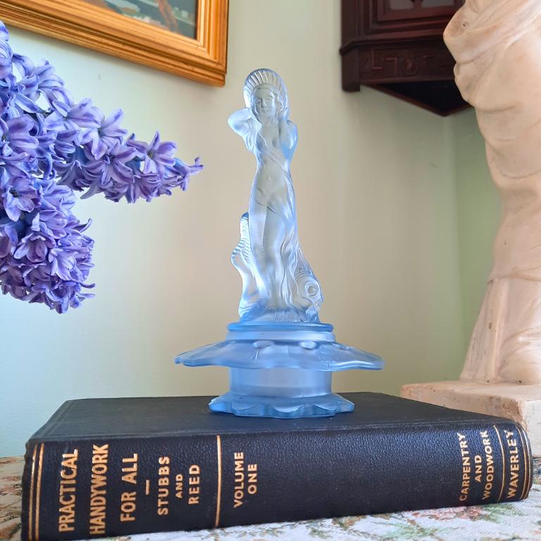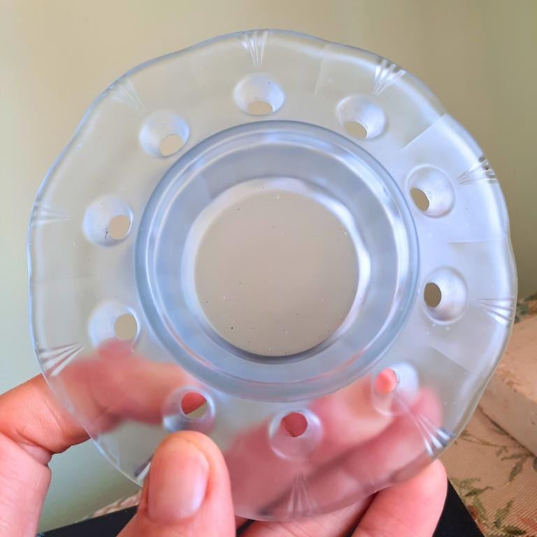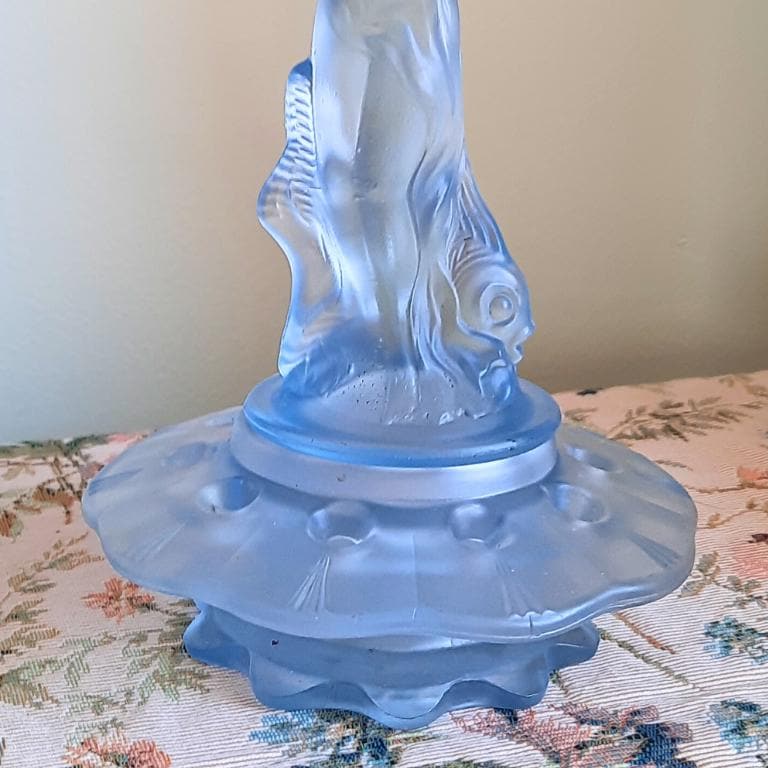 Art deco Period Arabella Blue Frosted Glass Flower Frog by Walther & Söhne Made in Germany during the 1930s.