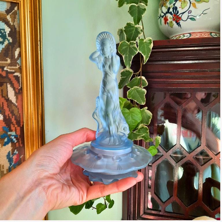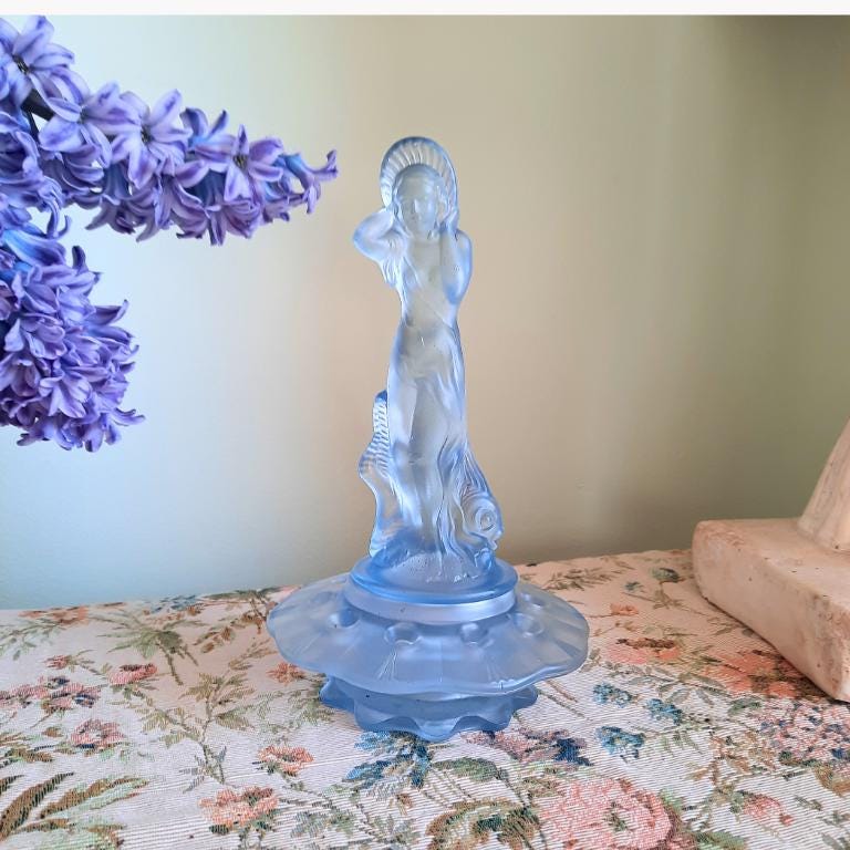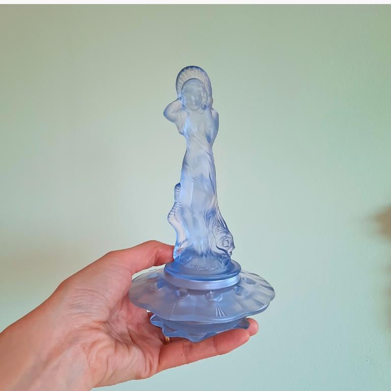 Walther & Söhne was founded near Dresden in 1888 and became one of Germany’s leading glassmakers in the early 20th century. The company is best known for its 1930s Art Deco designs, producing vibrant pressed glass figures, bowls, and trinket sets in frosted and clouded finishes. Their innovative "Oralit" range and bold use of colour made them a major name in decorative glass until production shifted after World War II.