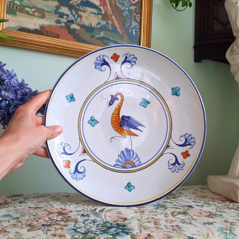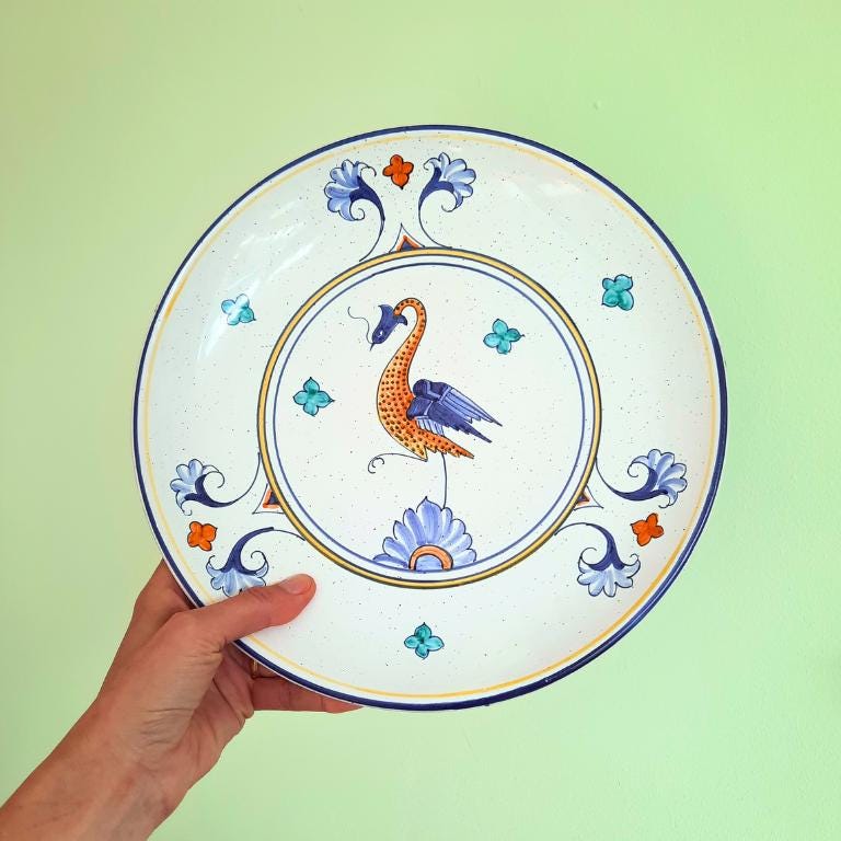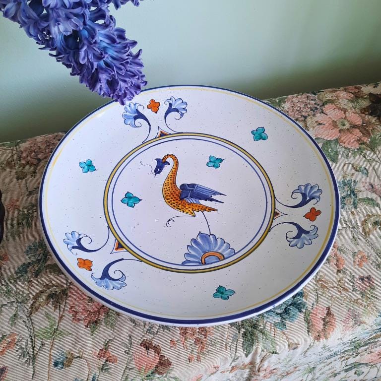 Large Deruta Hand Painted Bird Decorative Ceramic Bowl Plate D 11.7