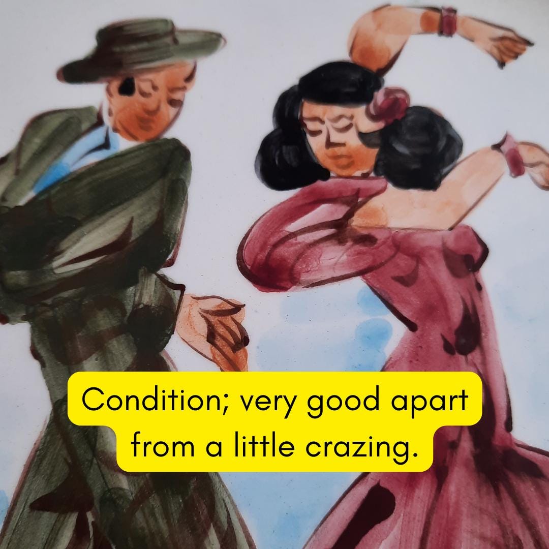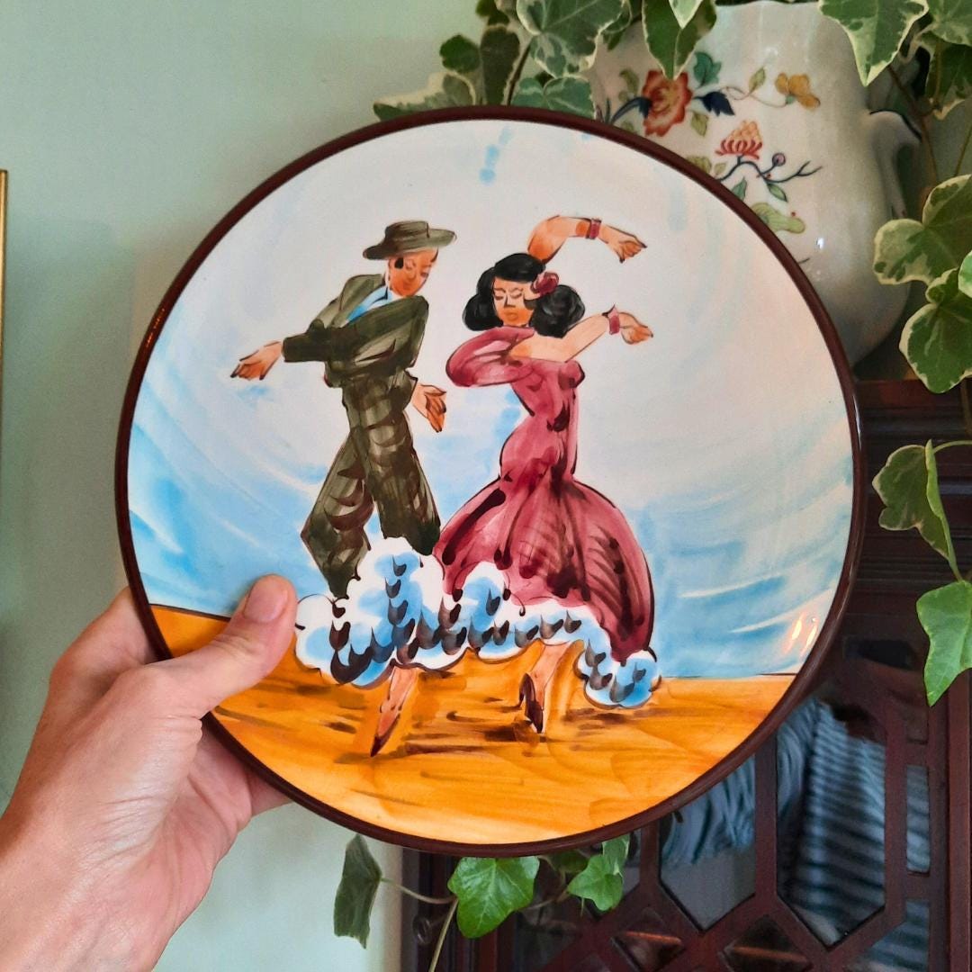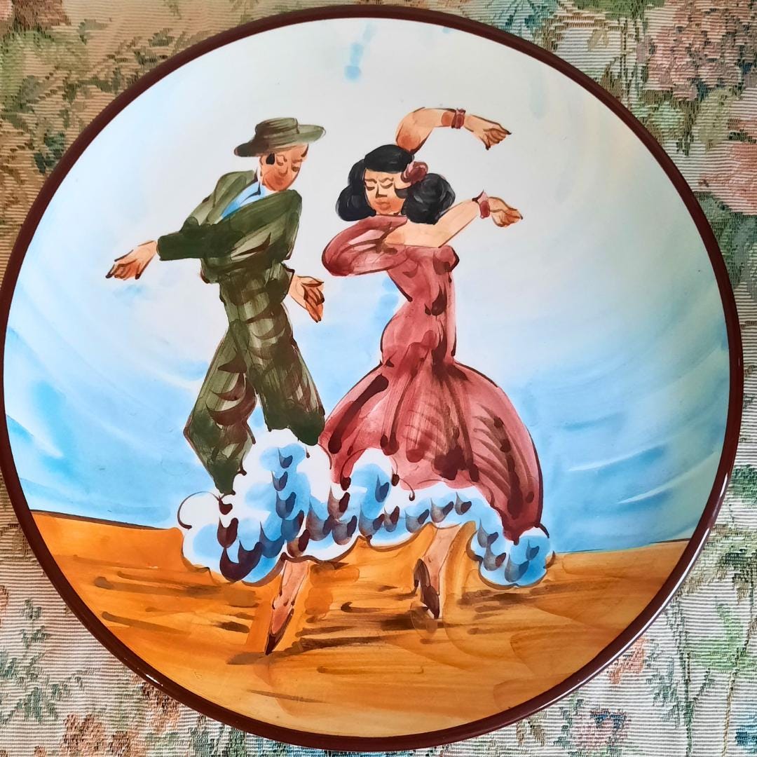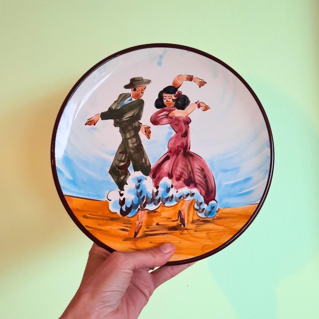 Vintage Spanish Hand Painted Wall Plate With Flamenco Dancers Couple Decoration D 10''