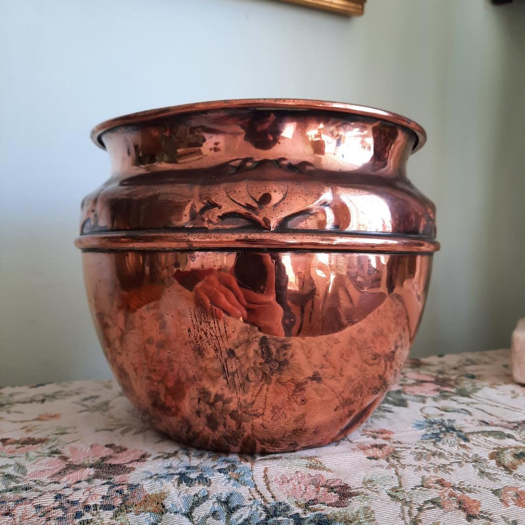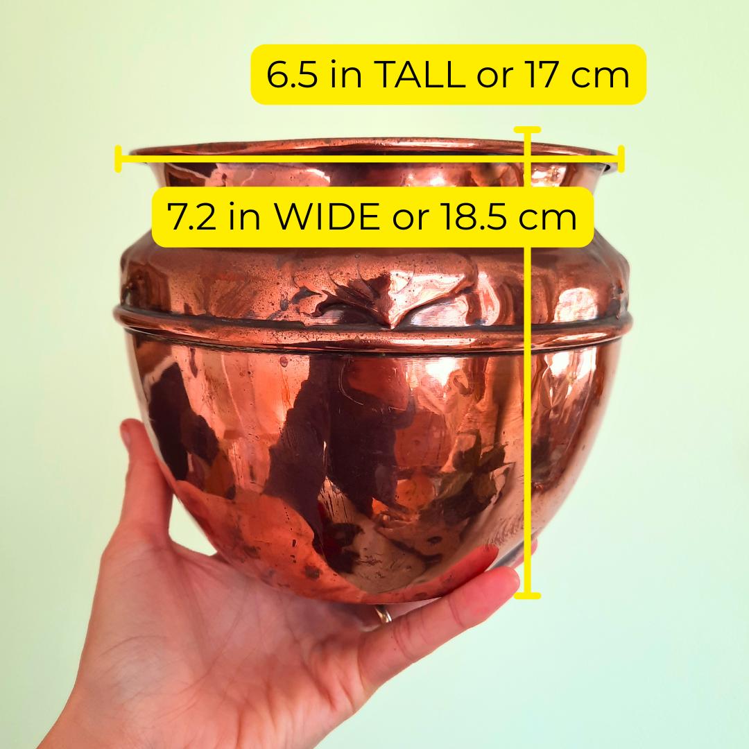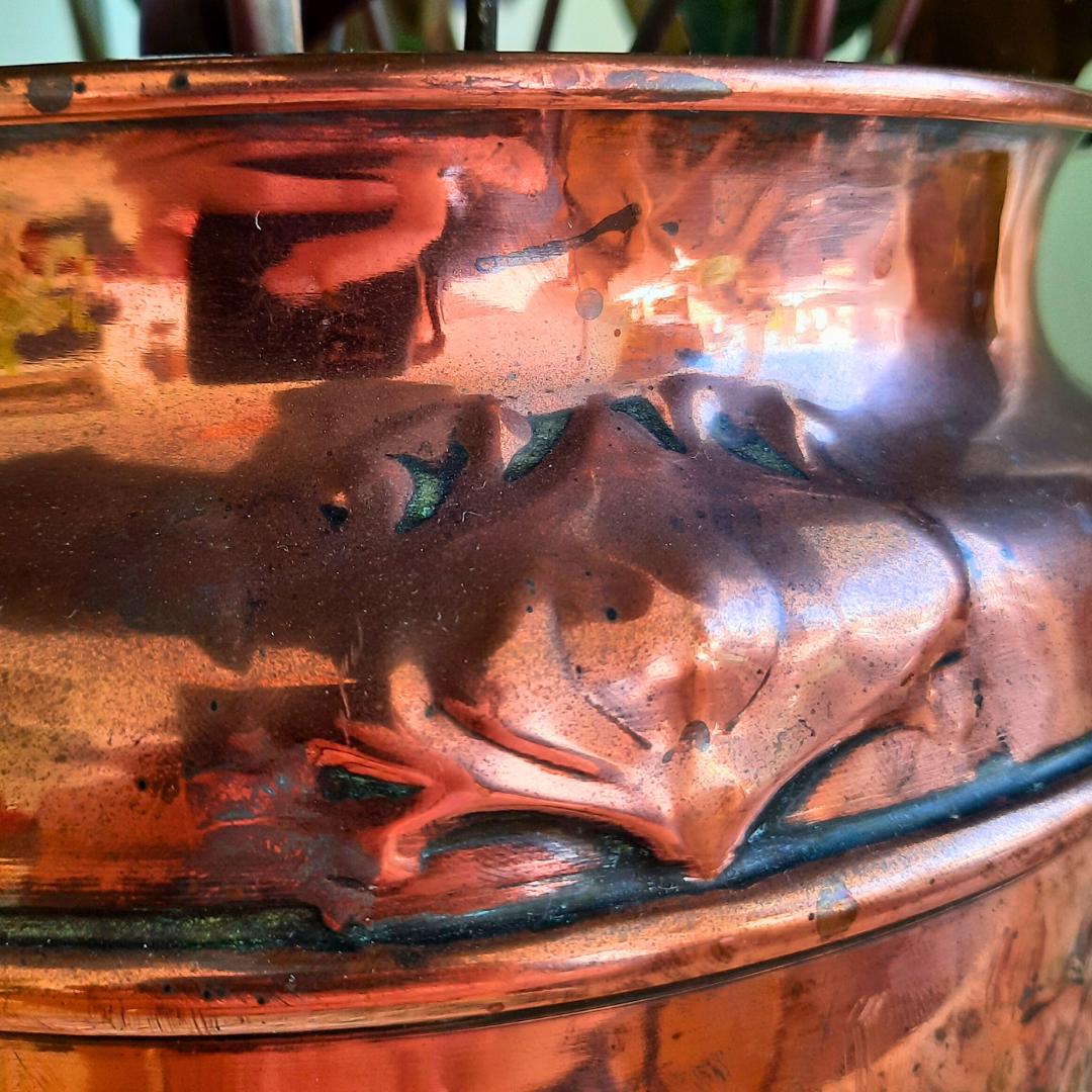 Antique Art Nouveau Embossed Copper Jardiniere 6.5'' Tall