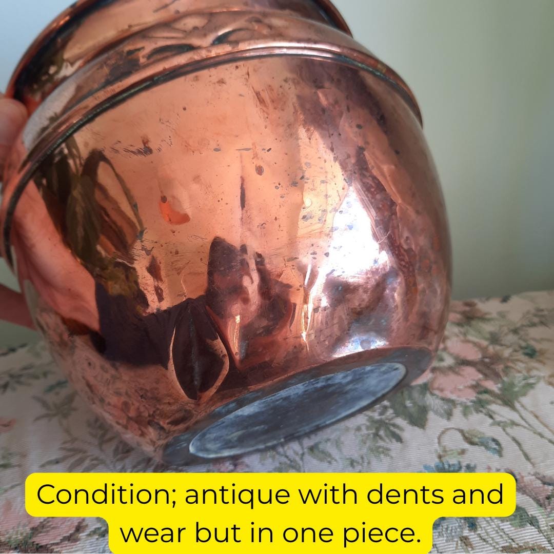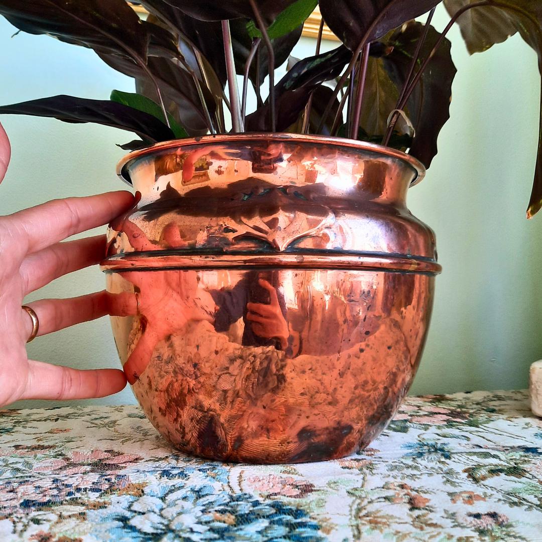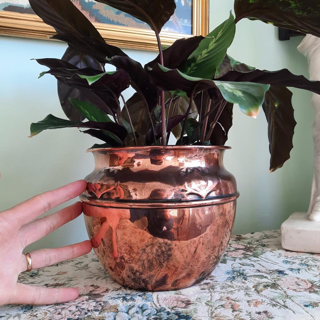 Antique Art Nouveau Embossed Copper Jardiniere 6.5'' Tall