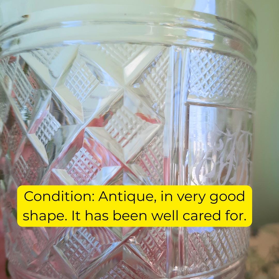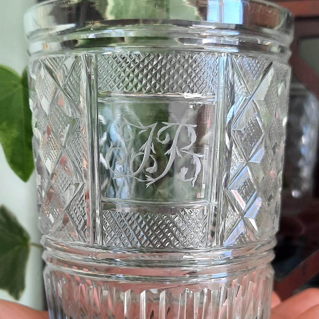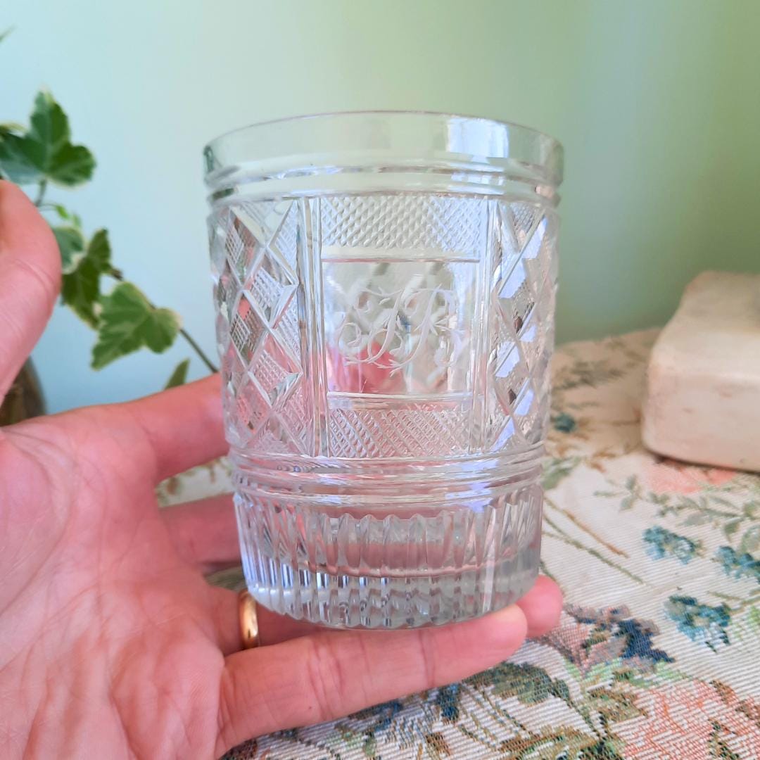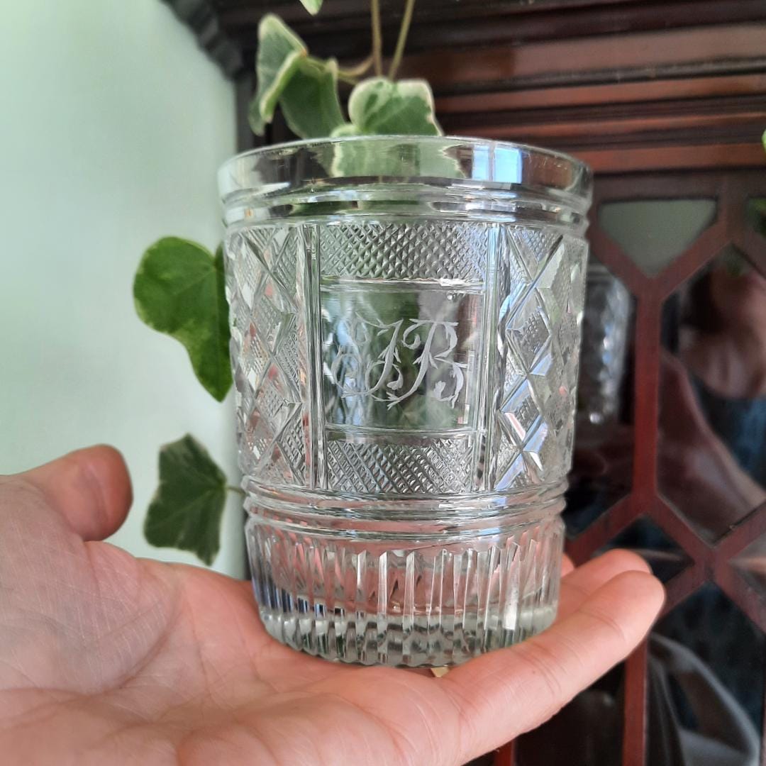 Antique Georgian Strawberry Cut Glass whiskey Tumbler with Ground Pontil Initials JR Early 1800's