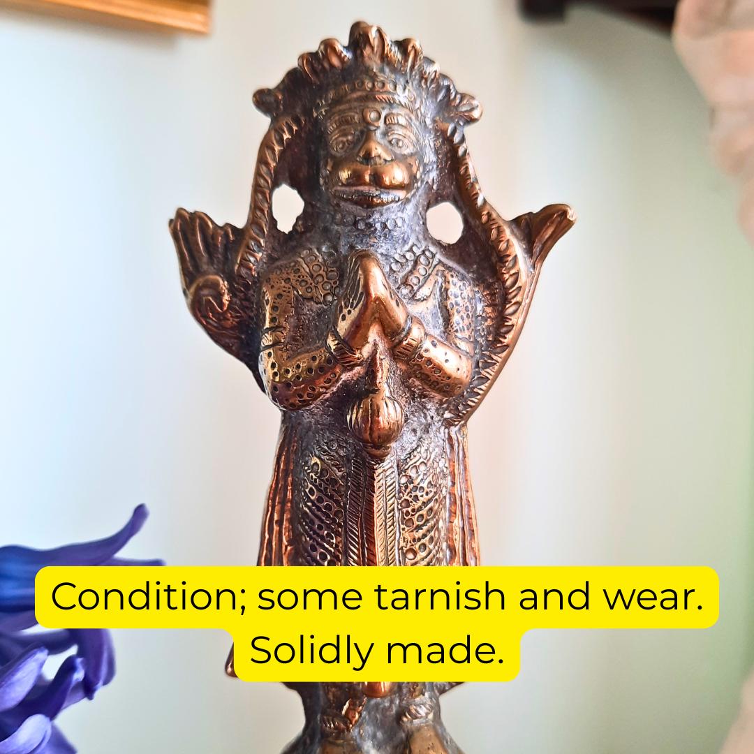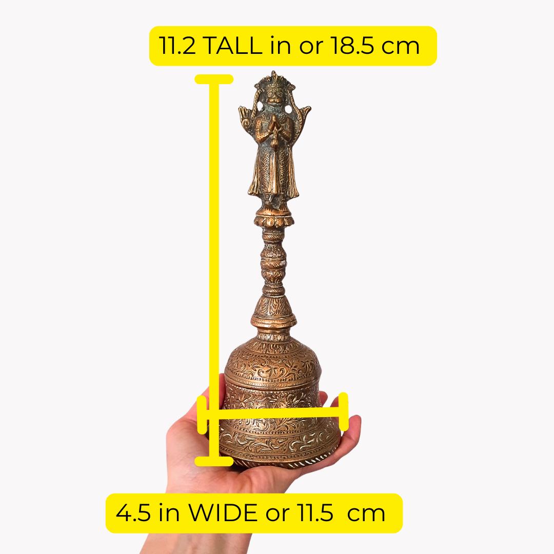 Large Heavy Indian Antique Rare Temple Bell Hindu Religious Brass Hanuman Bell H 11.2''