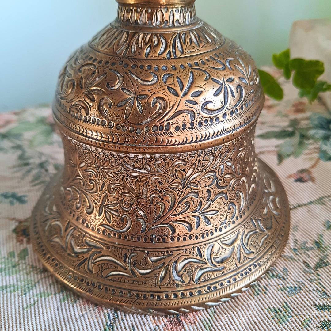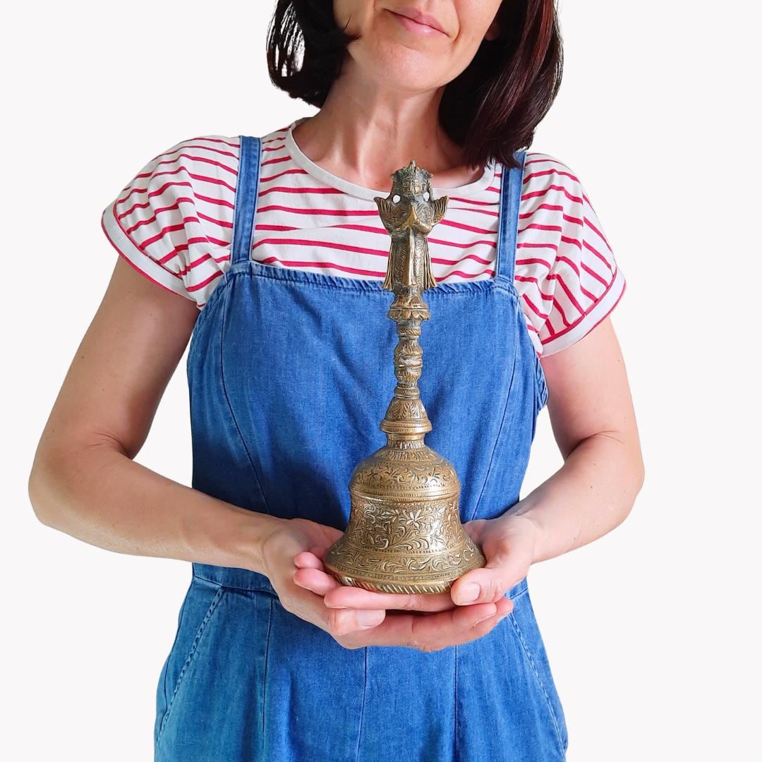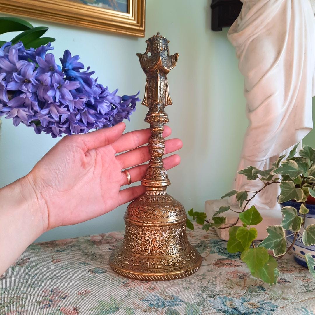 A beautiful piece, heavy and exquisitely handcrafted. This rare bell will make a superb addition to any refined interior or collection. I’ve had a few like it in the past, but this one is absolutely stunning. I’ve never seen anything quite like it.