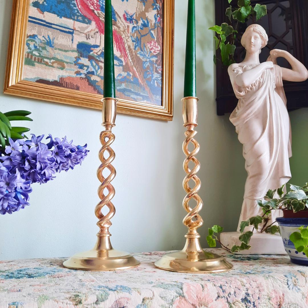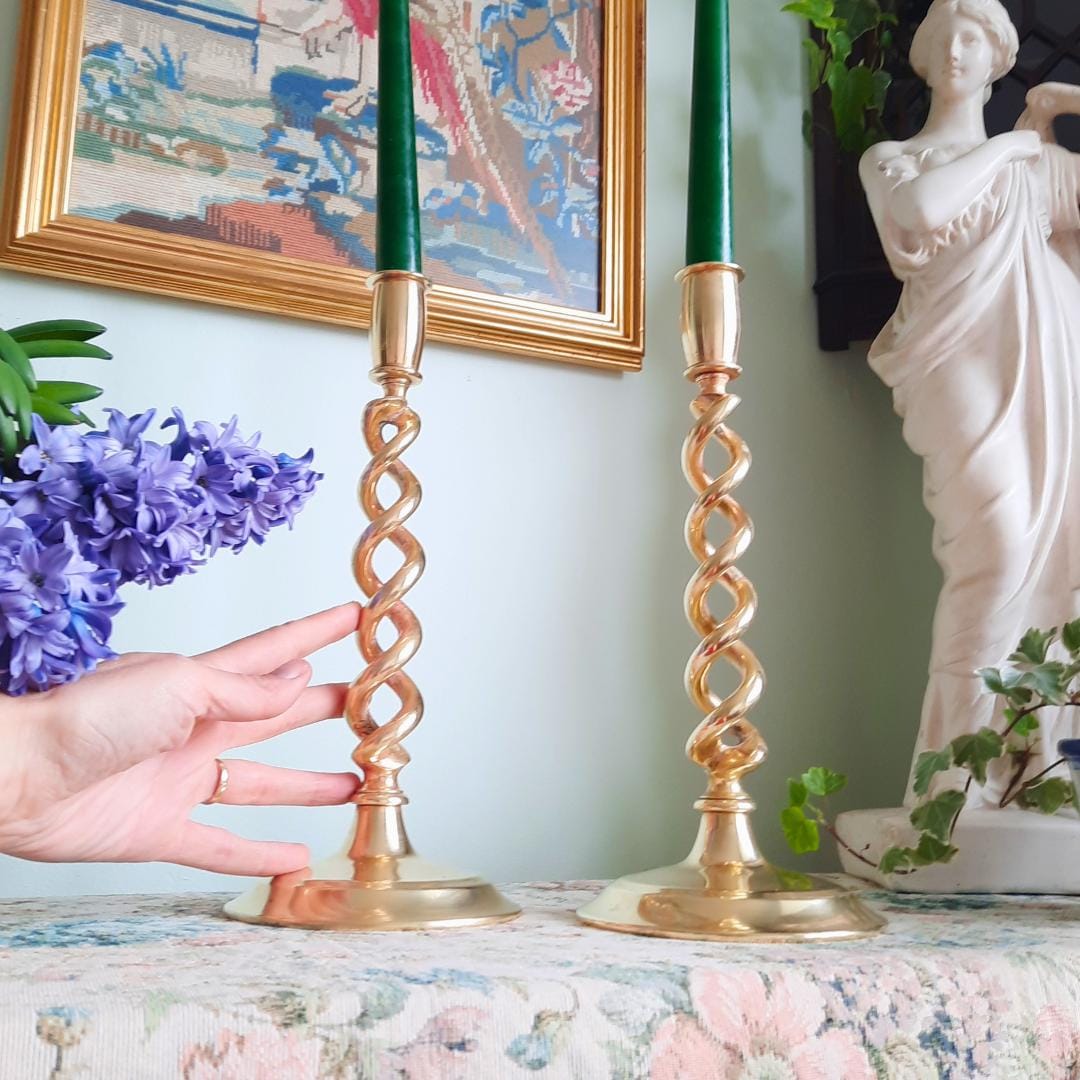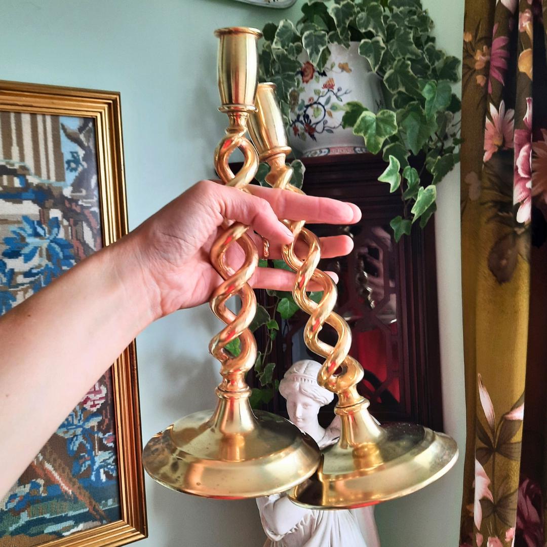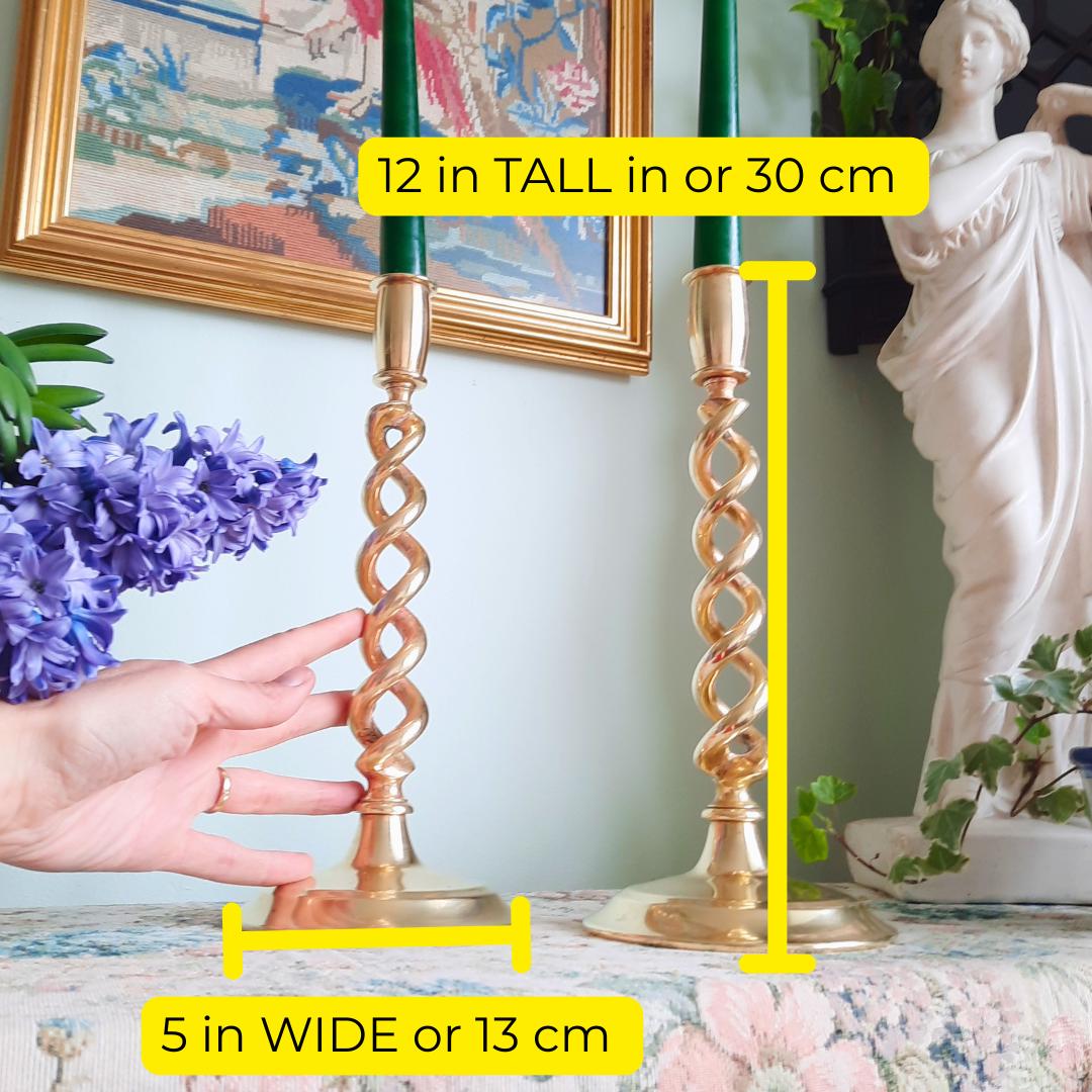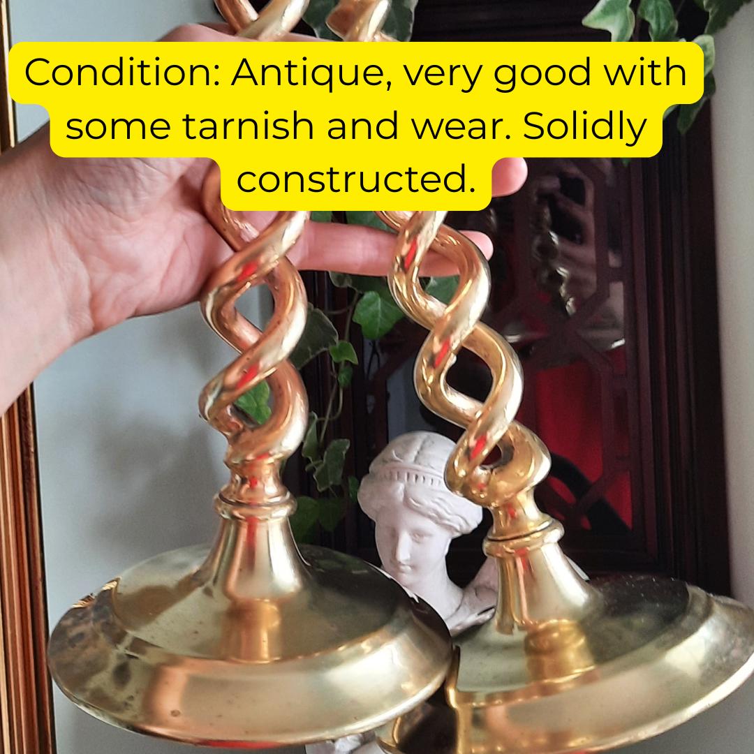 Truly Antique Victorian Open Barley Twist Brass Candle Holder Pair 1800s 12'' Tall