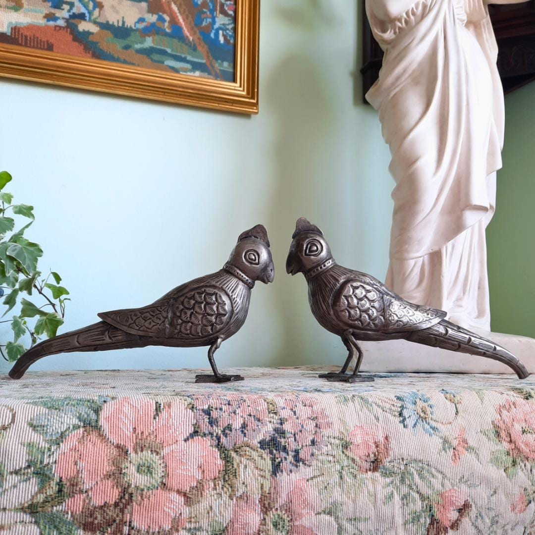 Gorgeous Indian parrot birds that will make a wonderful addition to any quality interior. Perfect for the lover of Indian antiques or birds. Also beautiful as gift for the home for the lover of quirky and beautiful home decor accents.