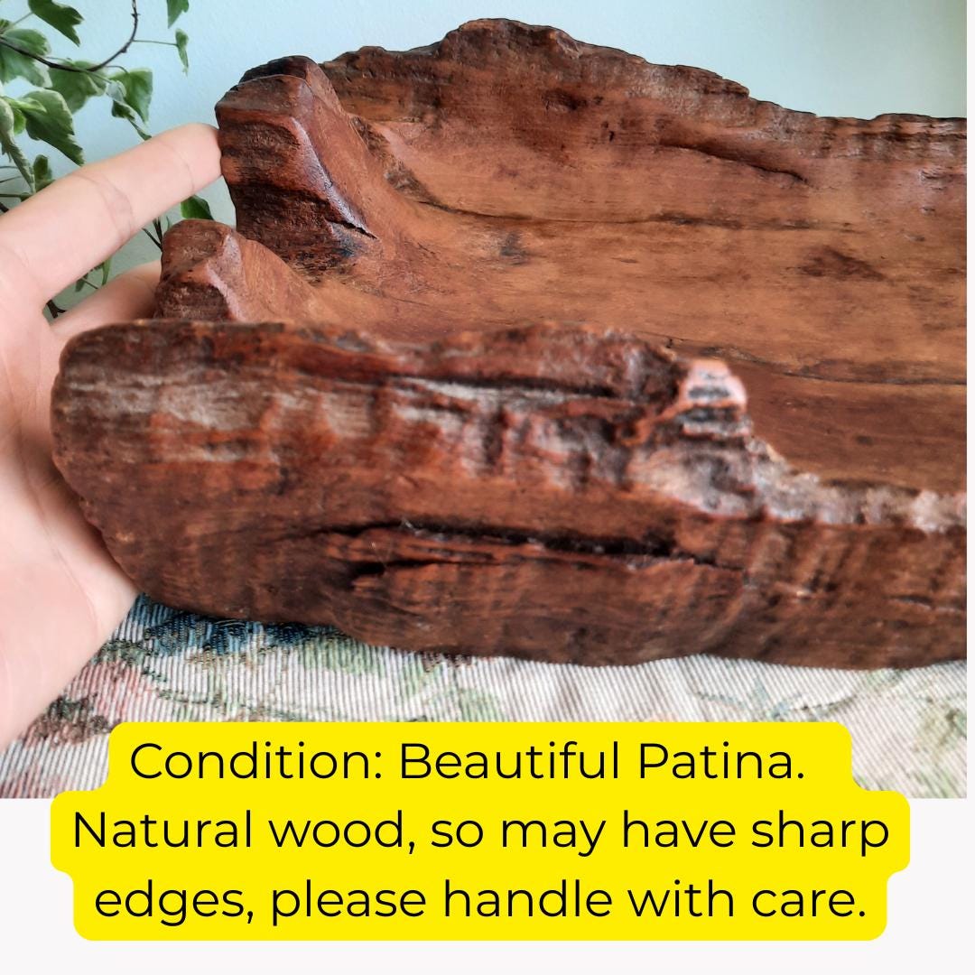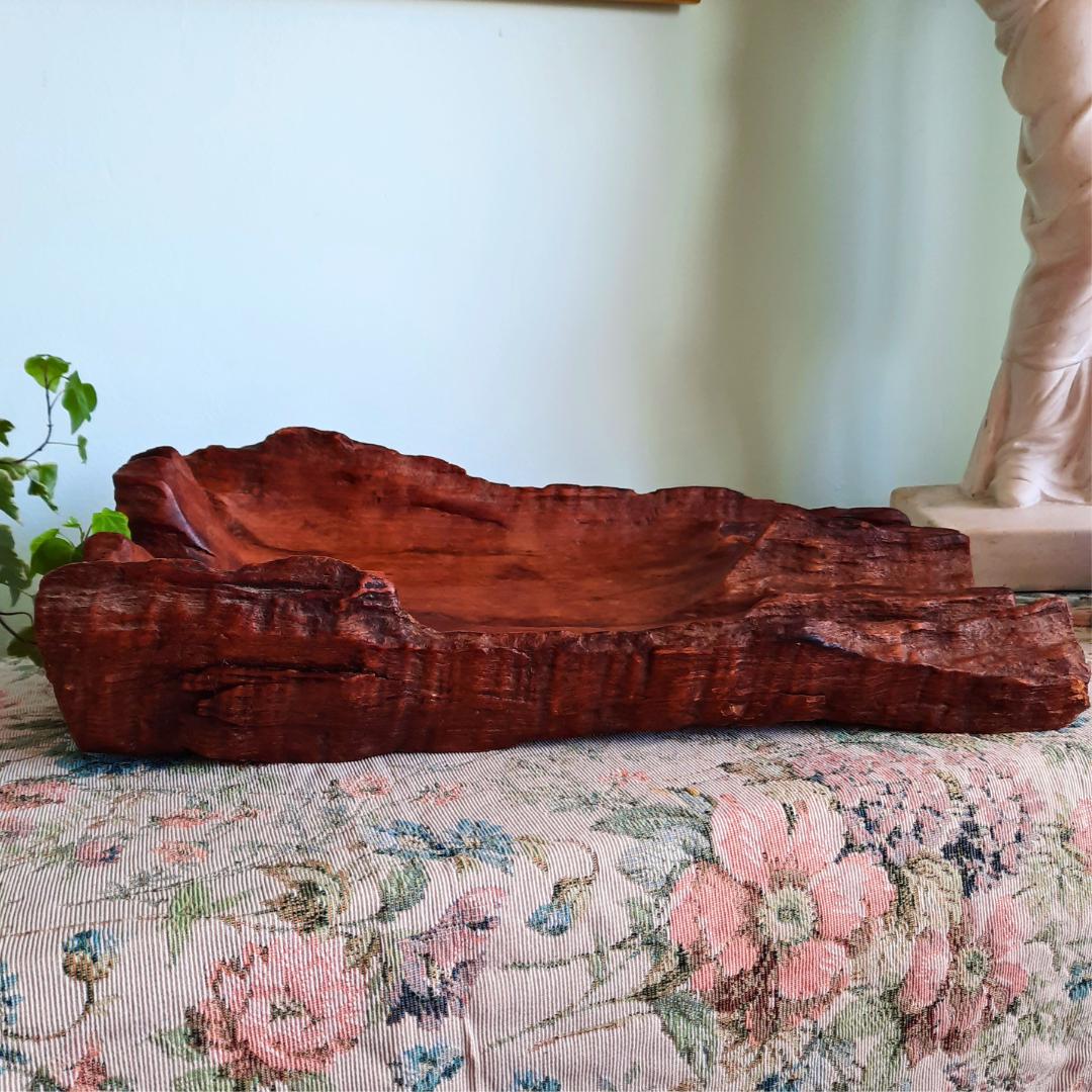 Vintage Large Carved Organic Decorative Hardwood Root Wooden Bowl 15.2 '' Long