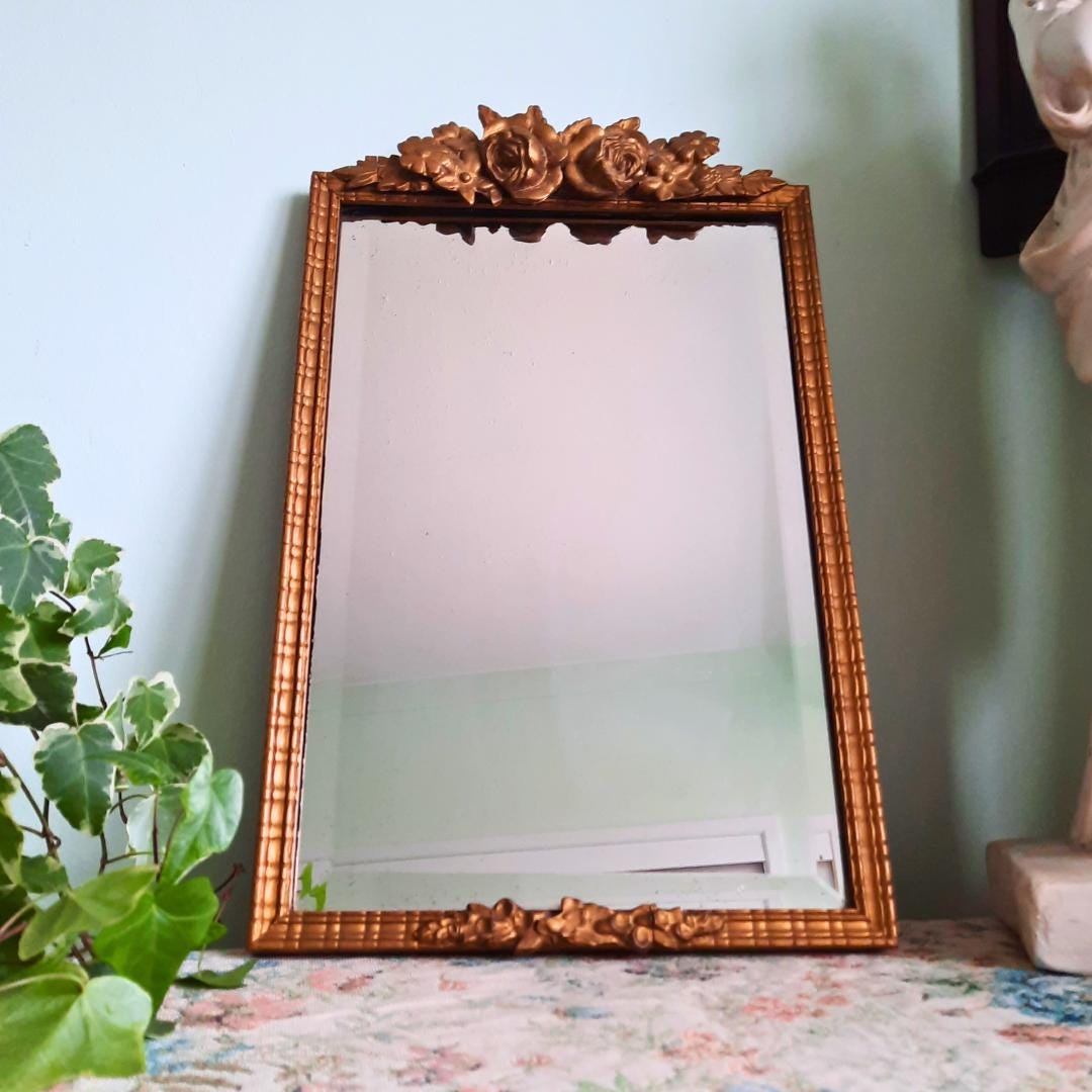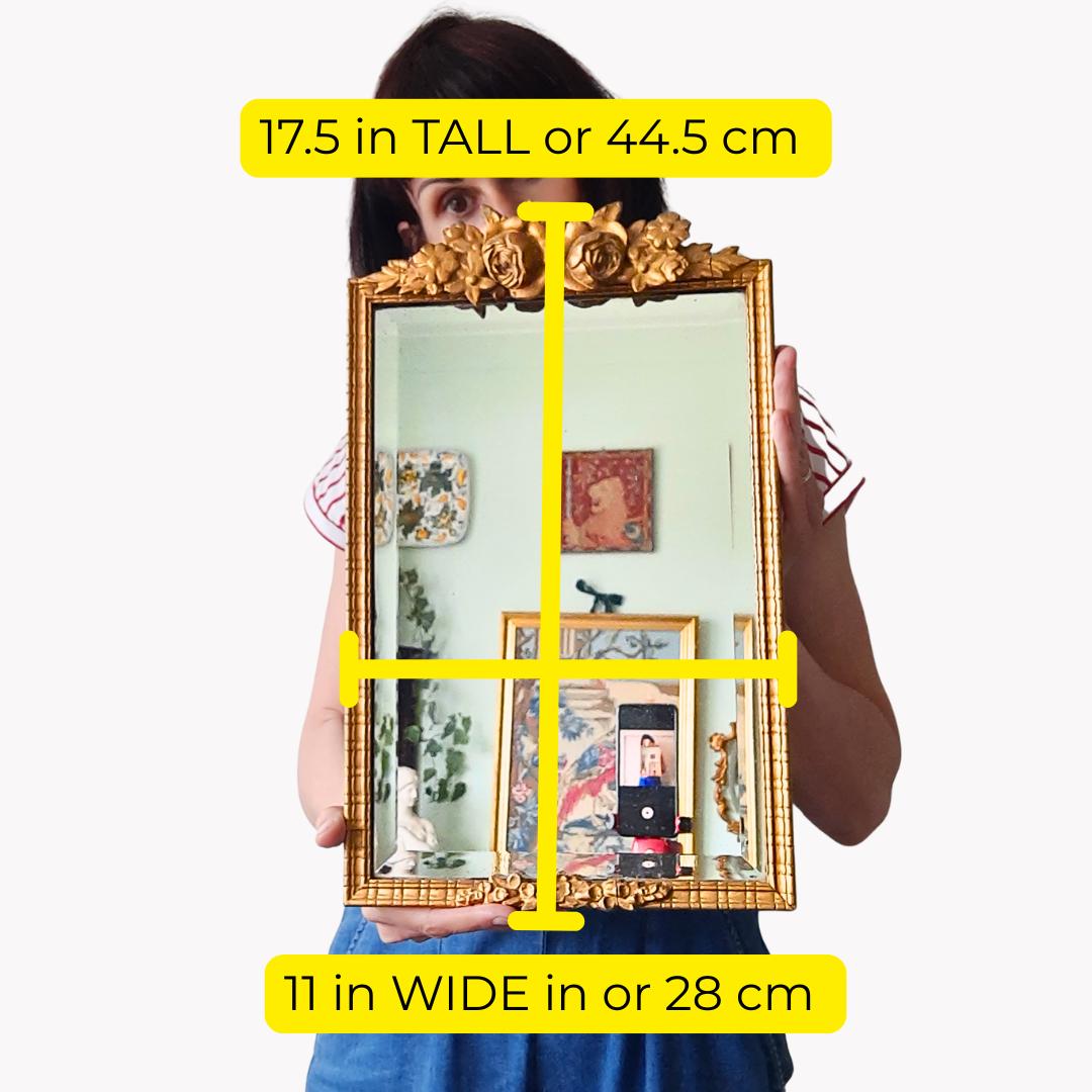 Antique 1920's Floral Decorated Barbola Wall Mirror Rectangular Shape 17.5'' Tall