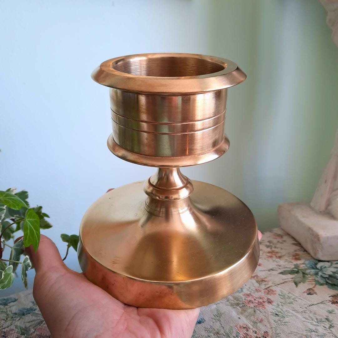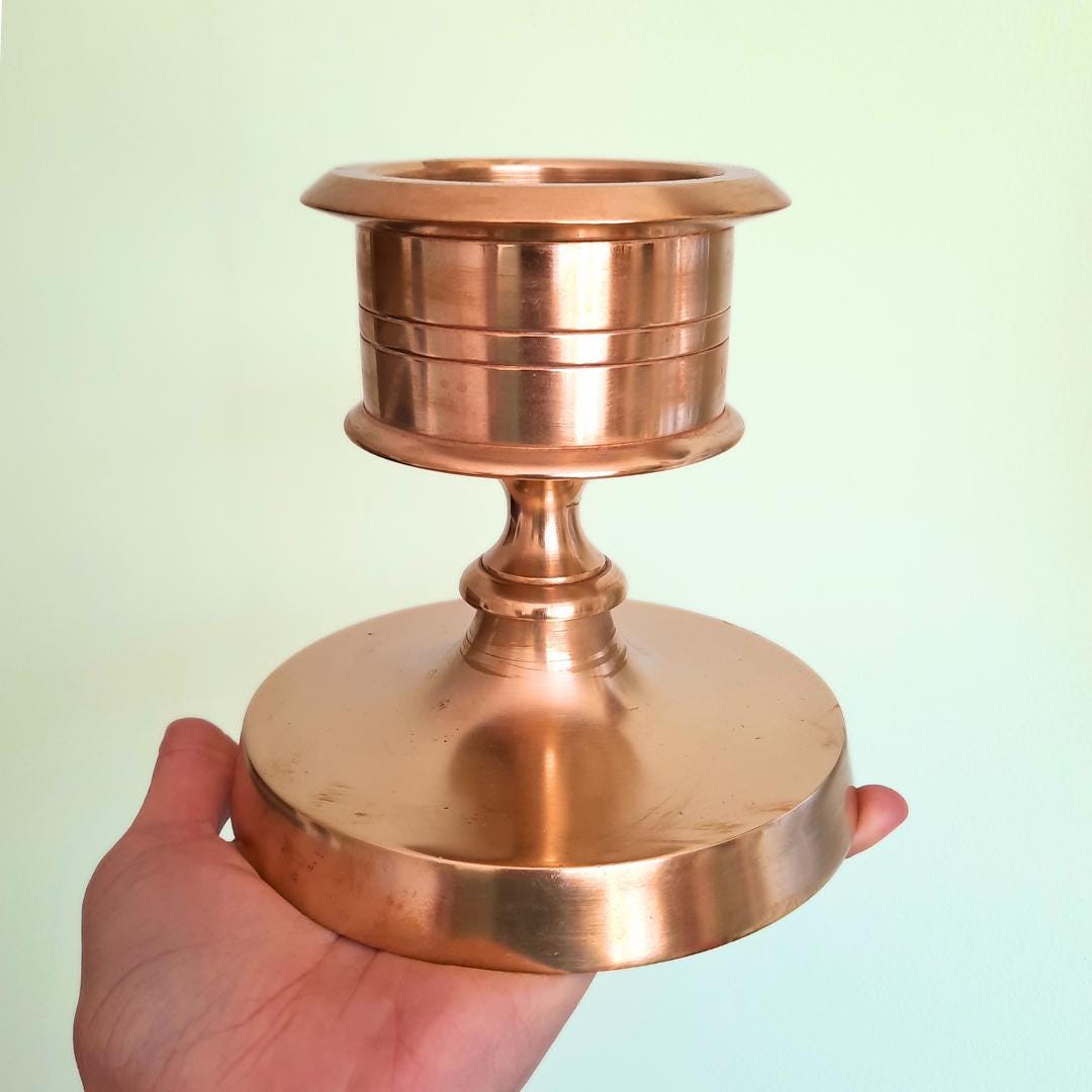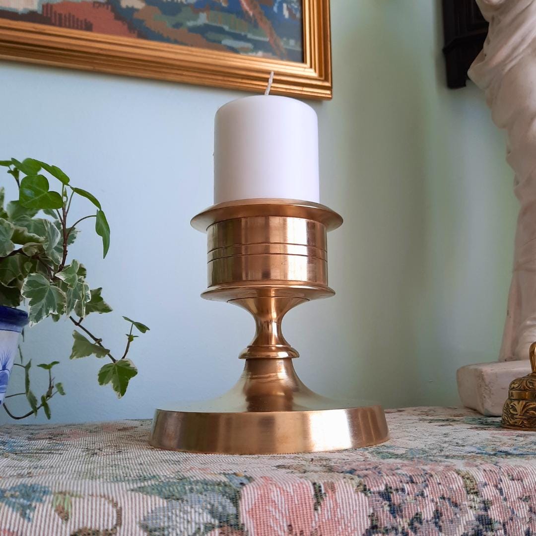 MCM Scandinavian Minimalist Solid Brass Or Bronze Pillar Candleholder 5.5 In Tall