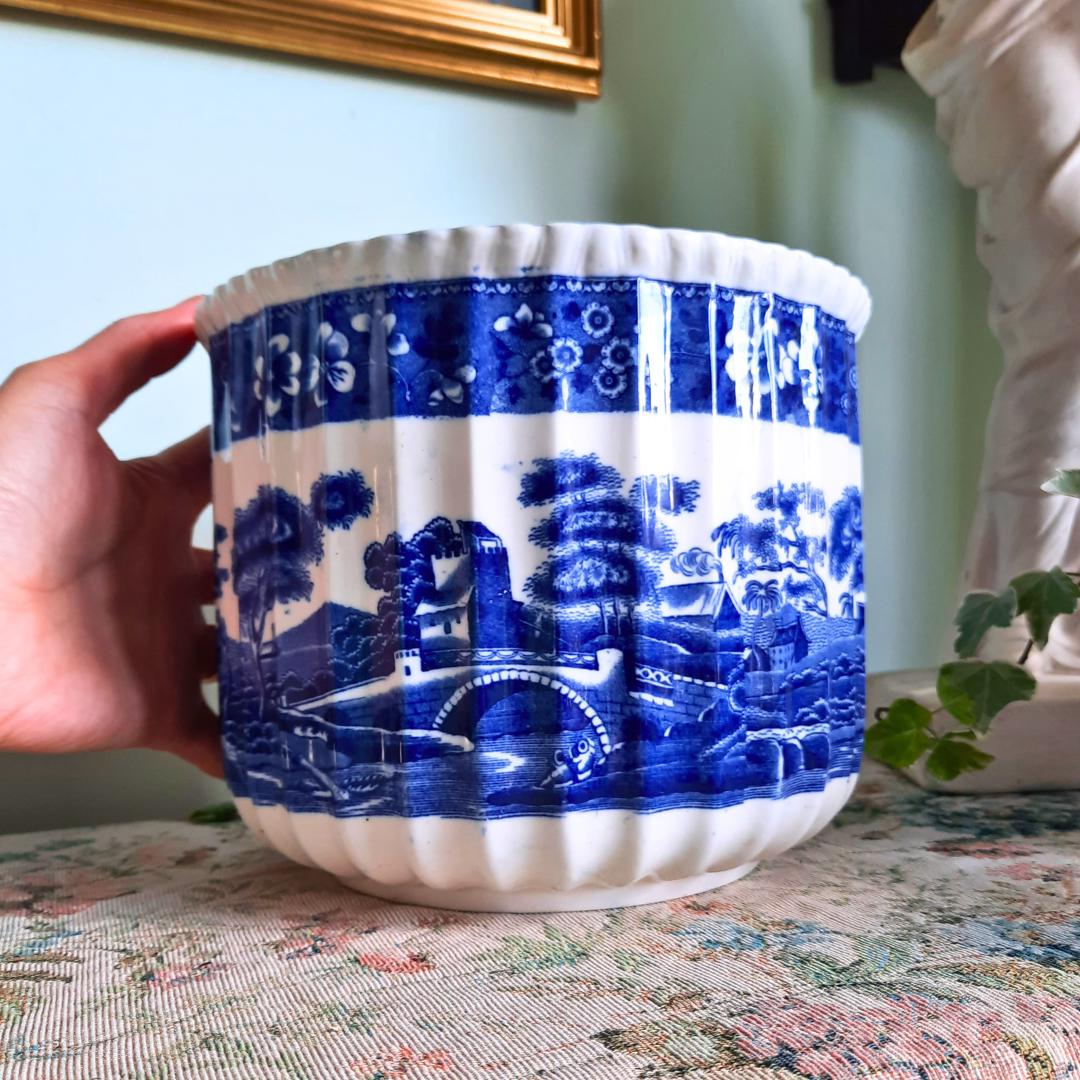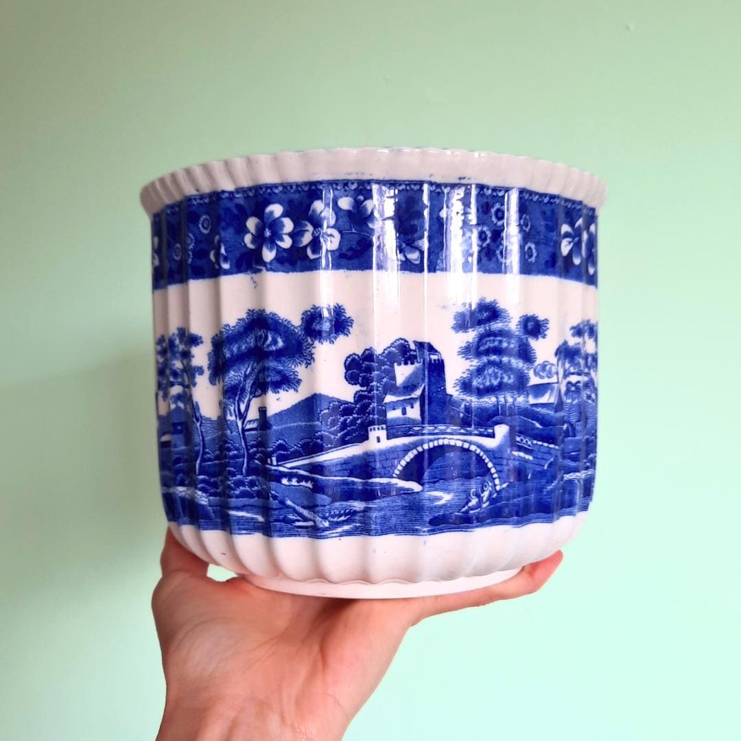 Antique Large Spode Copeland Blue Tower Pattern Jardiniere Older Version C 1920's- 30's