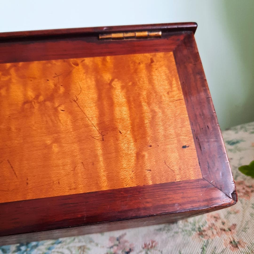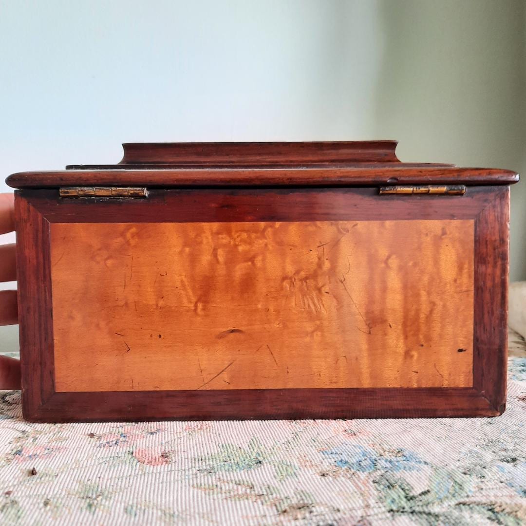 Antique English Regency Sarcophagus Shaped Wooden Box Without Key.