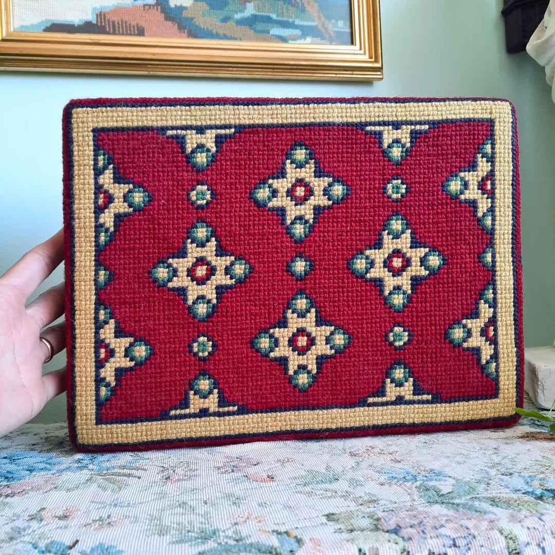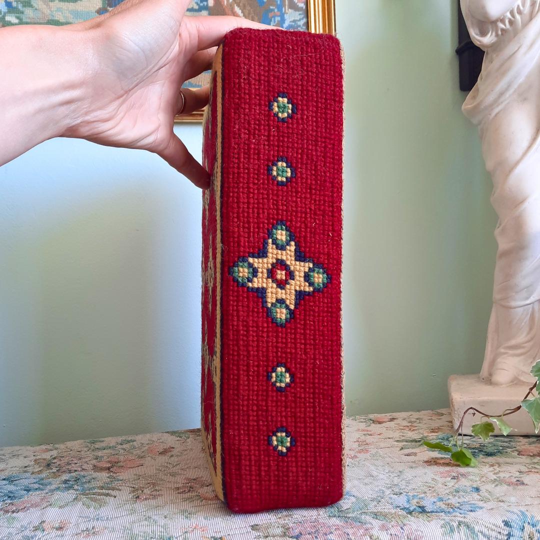 Vintage Cross Stitch Tapestry Church Kneeling Cushion, Religious Home Decor.