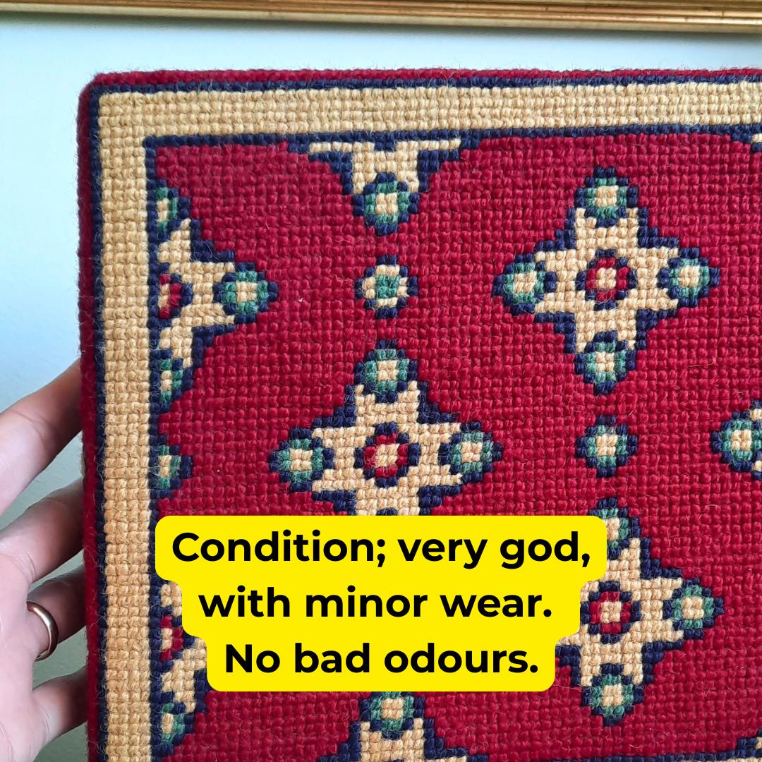 Beautiful cross stich church kneeler that will make a wonderful addition to any quirky interior. This were handcrafted often by the parishioners for comfortable kneeling when praying.