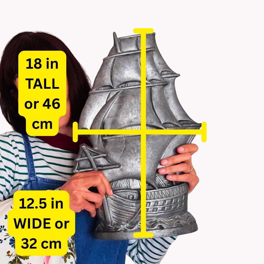Large Antique White Metal Elizabethan Galleon Ship Statue H 18''