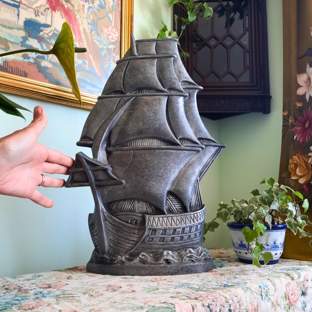 Beautiful antique early 1900's galleon ship statue that will add interest to any quality interior. Perfect for a nautical scheme. It wont pass unnoticed. Wonderful conversation piece.