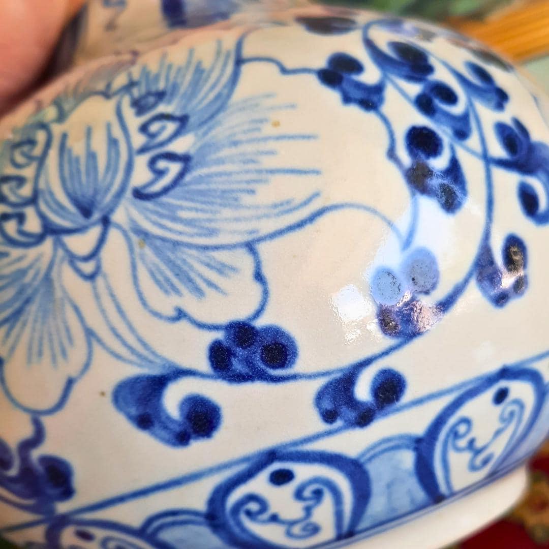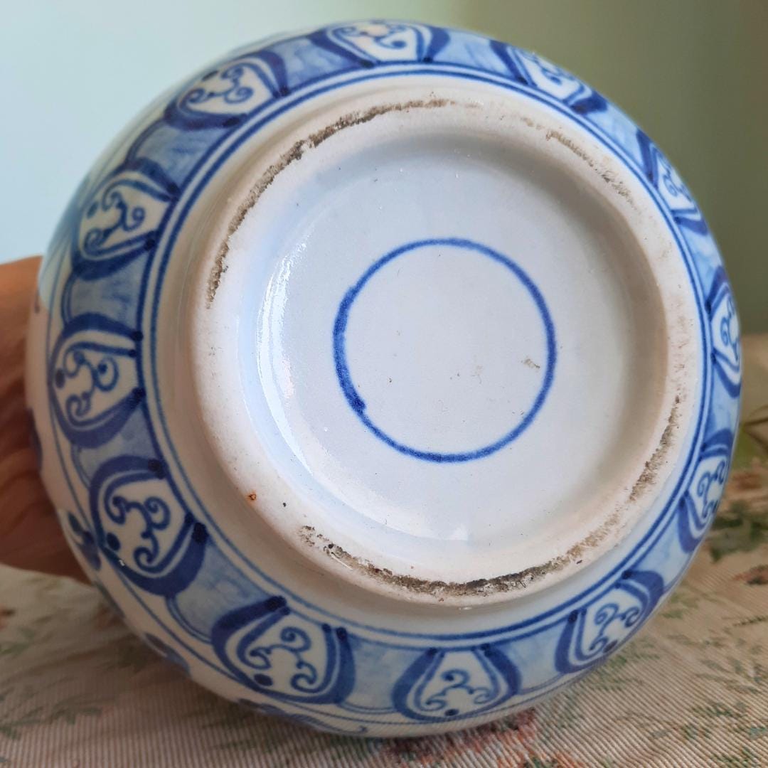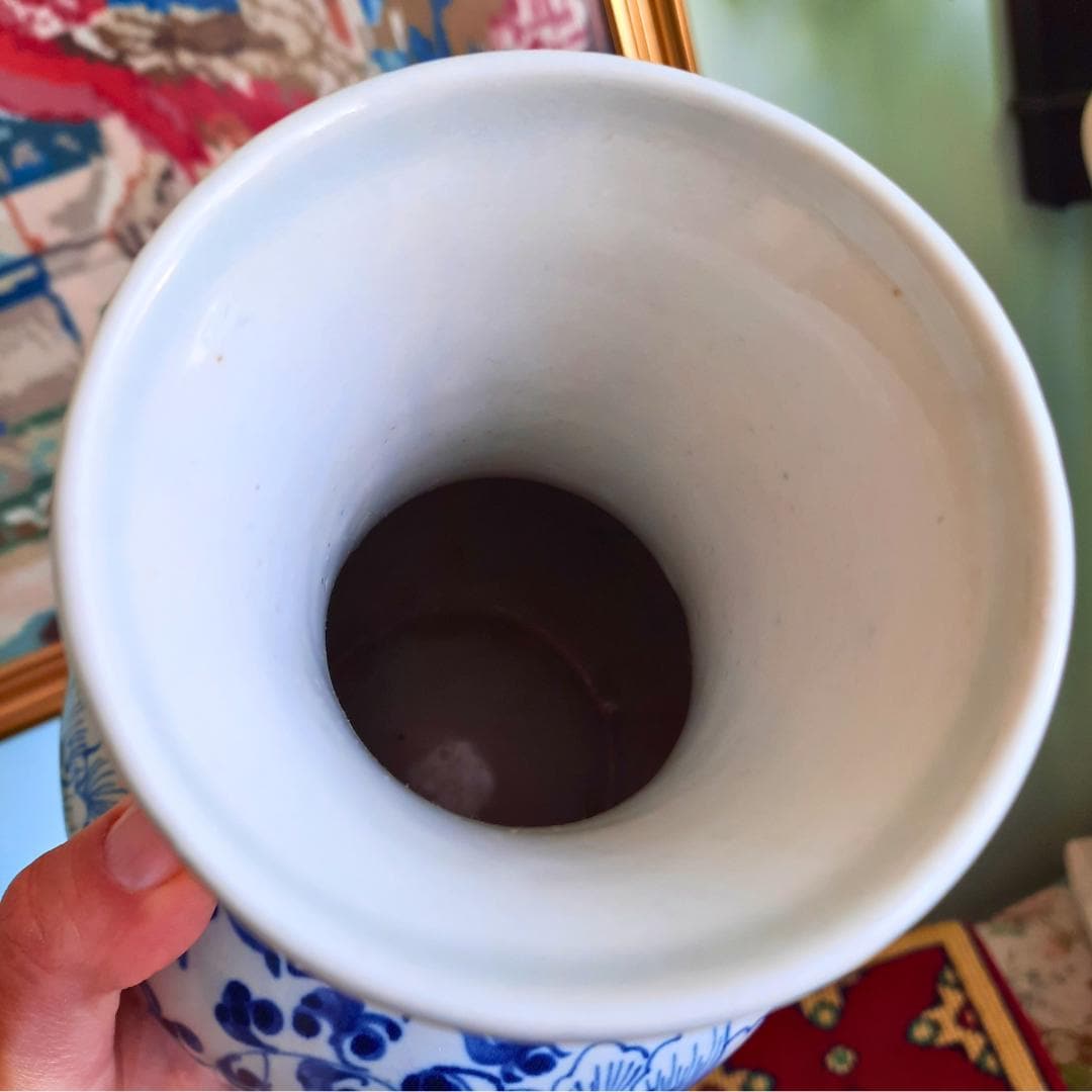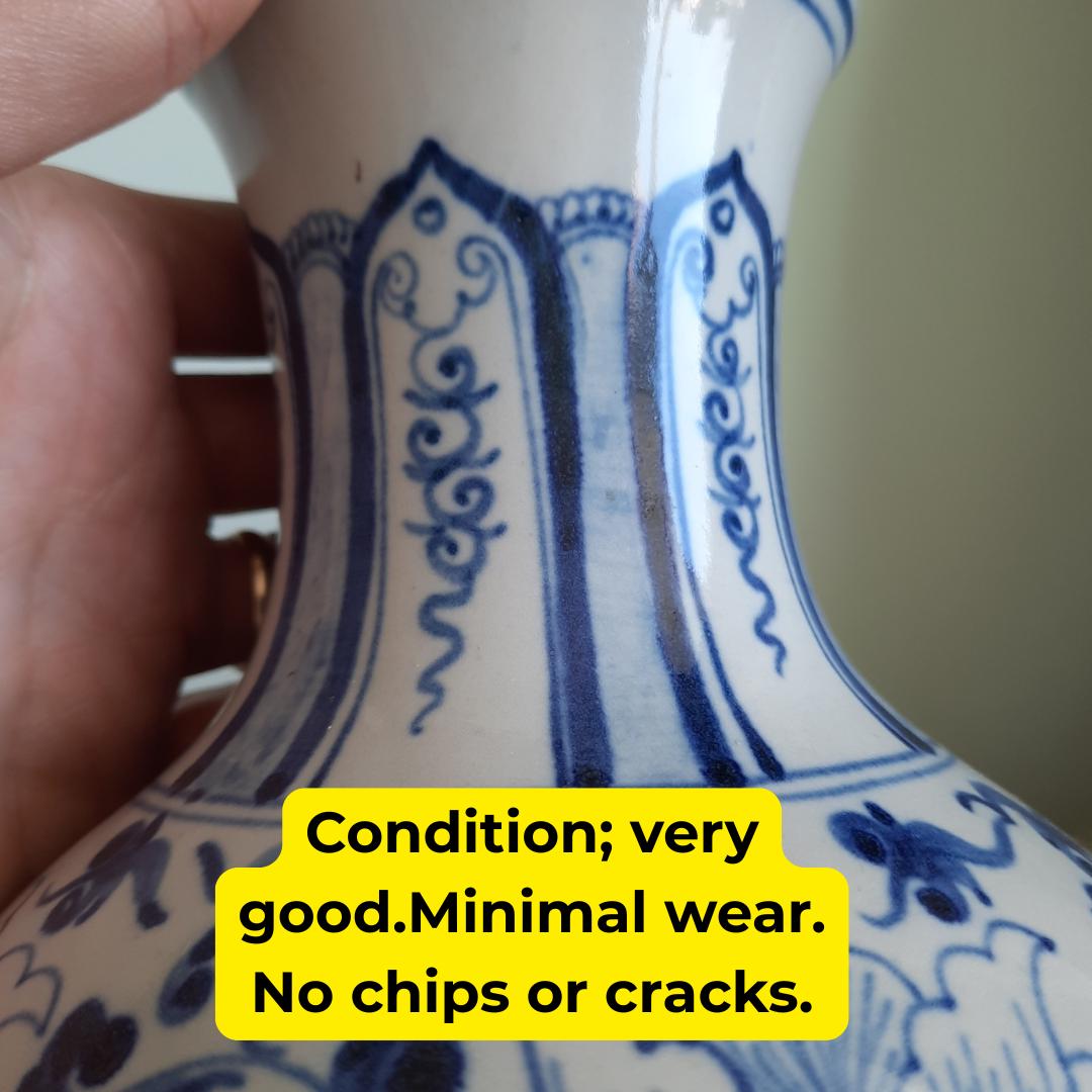 Vintage Chinese Ceramic Blue And White Hand-Painted Floral Vase 7.5'' Tall