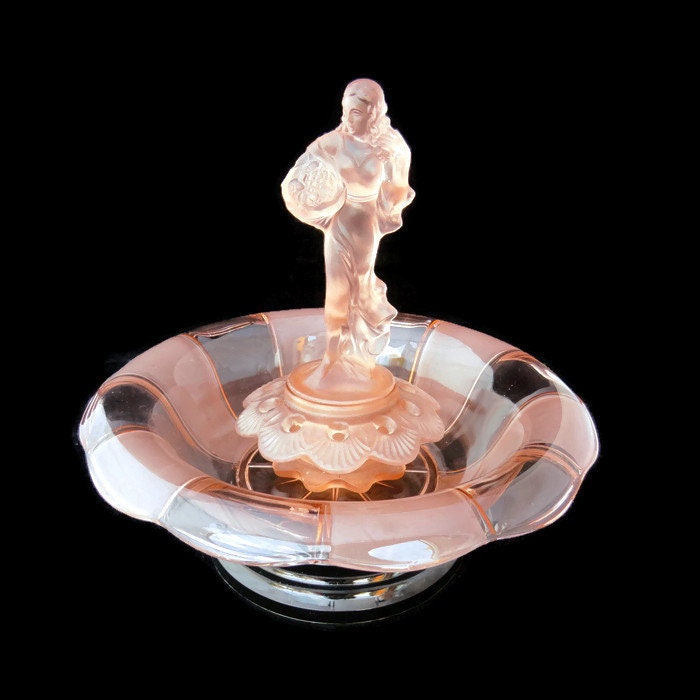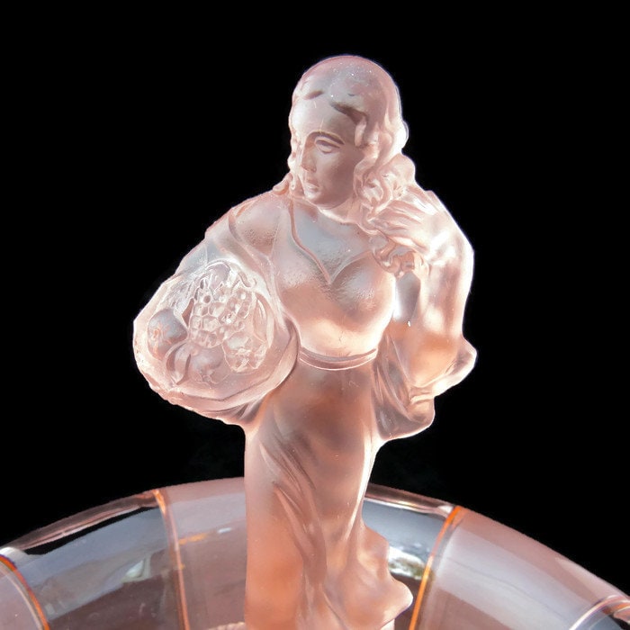 Condition: There are 2 small chips in the base of Lucretia ,I show them in the pictures.The glass has some tiny chips in the under base of the bowl ,which cannot been seen and in the basket of flowers that Lucretia holds as seen in the pictures.Please ,if you want me to send you more pictures ,let me know.