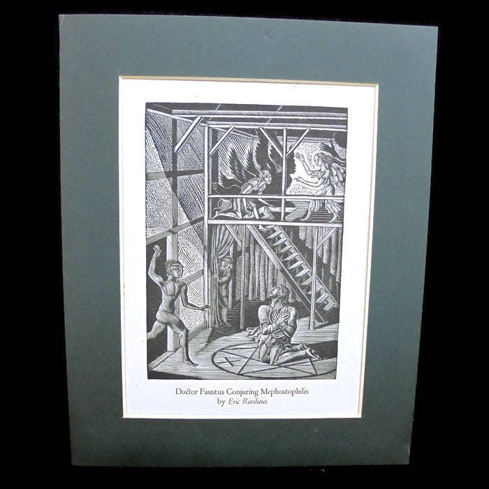 Dr FAUSTUS CONJURING MEPHISTOPHELES 1929 by ERIC RAVILIOUS ORIGINAL WOOD ENGRAVING.