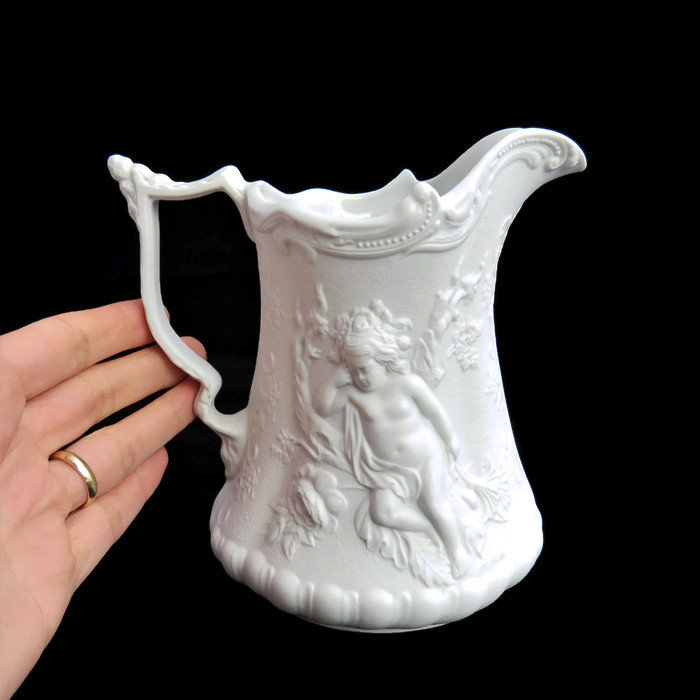 Large Portmeirion Parian Ware Cherub Design White Jug.