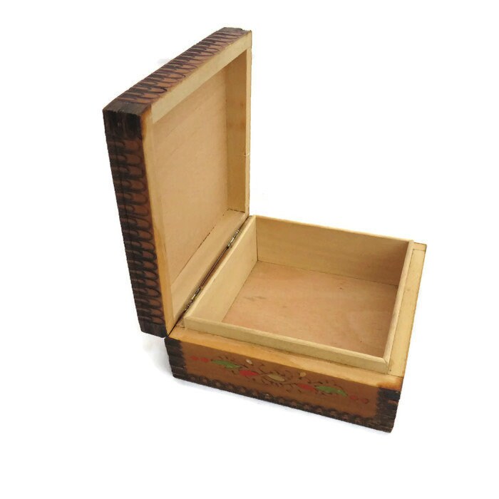VINTAGE RUSSIAN FOLK ART PYROGRAPHY WOODEN BOX.