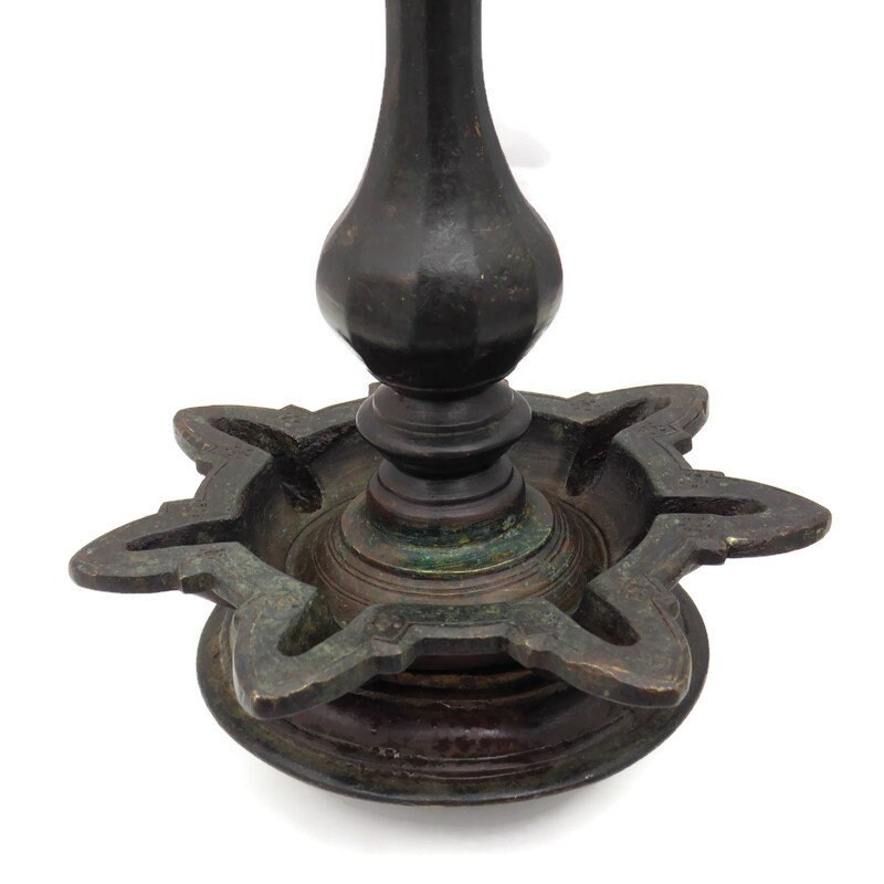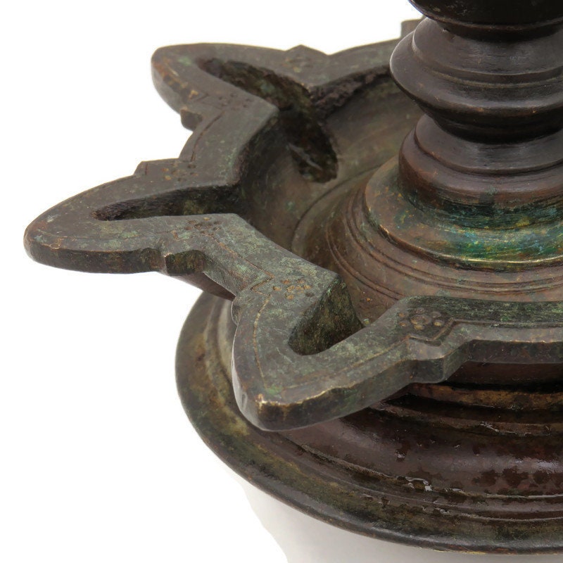 ANTIQUE HINDU TEMPLE BRONZE DIYA OIL LAMP .
