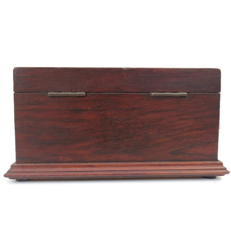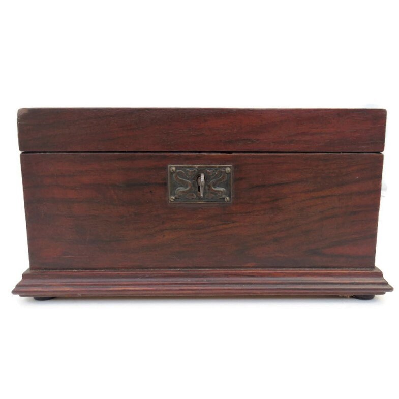 THIS BEAUTIFUL WOODEN BOX WAS HANDCRAFTED C LATE 1800'S AND COMES WITH THE ORIGINAL KEY .THE LOCK IS BEAUTIFULLY DECORATED WITH DOLPHINS.