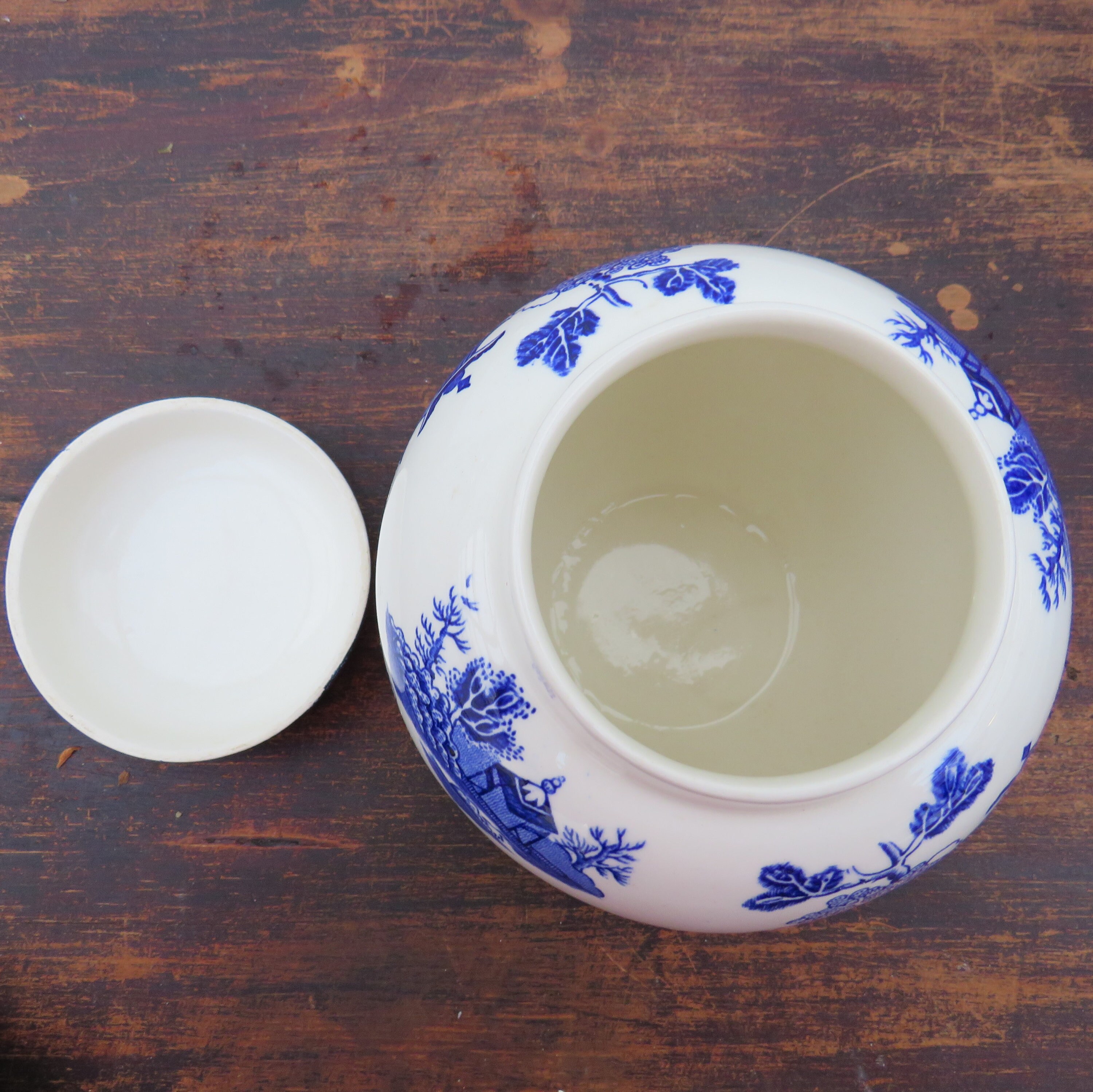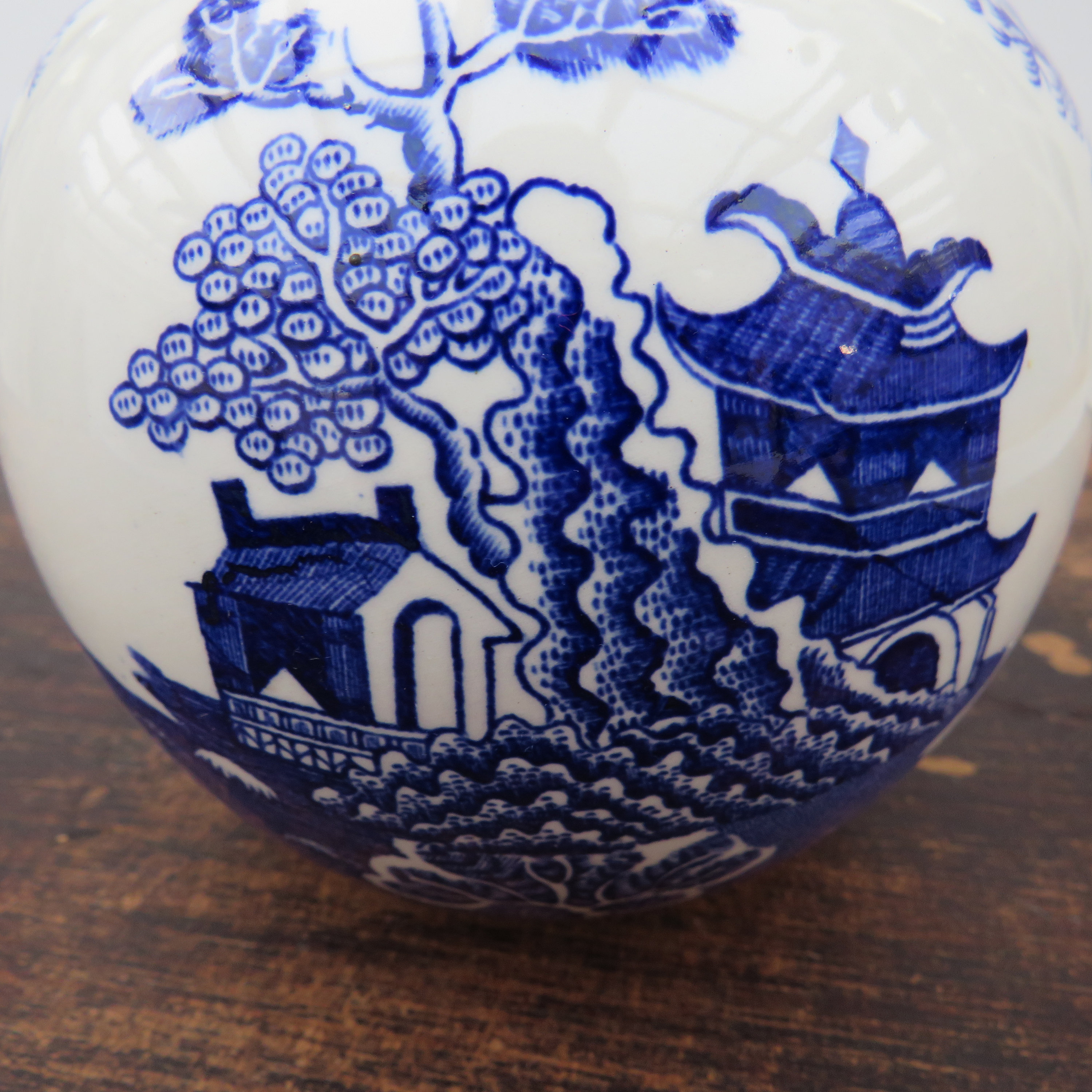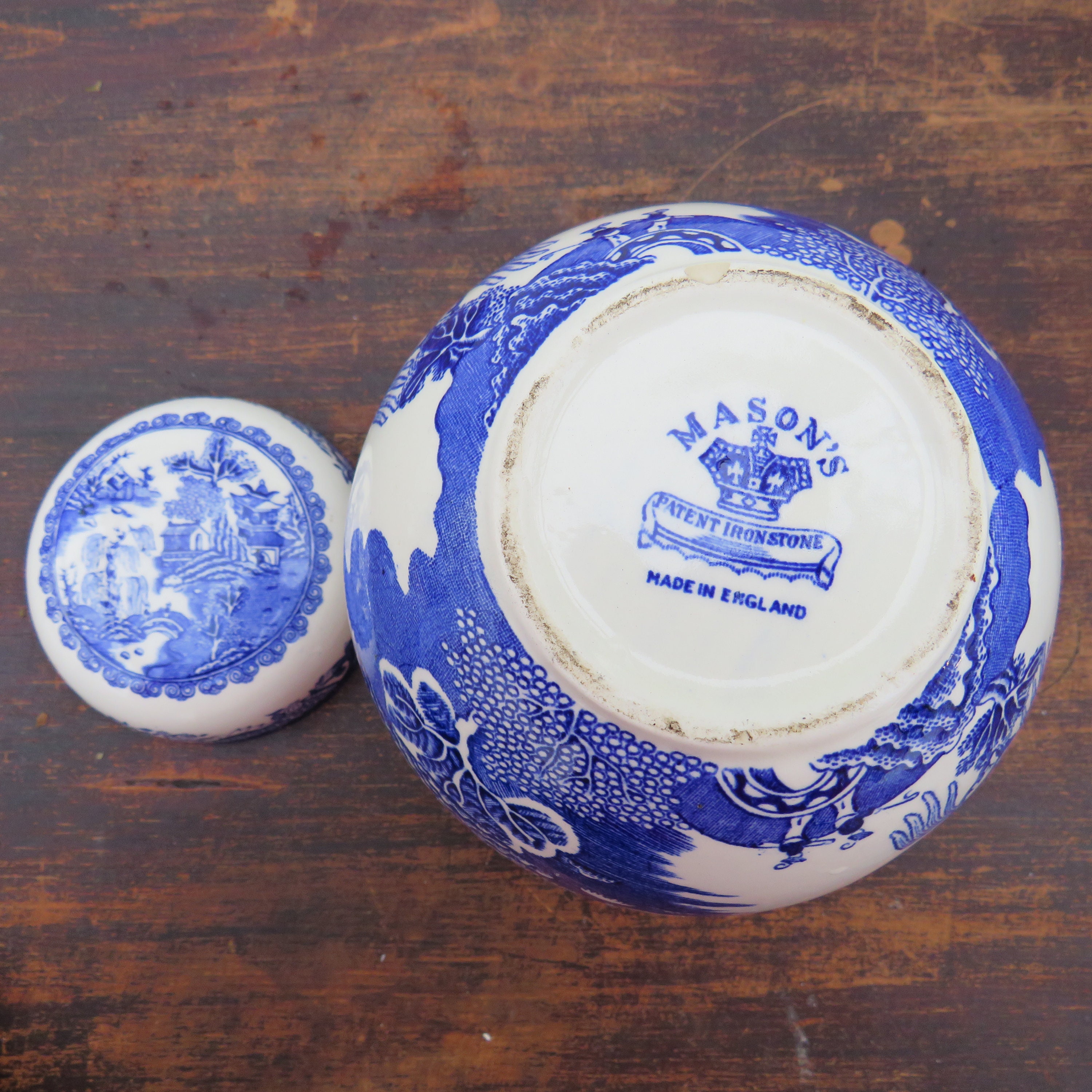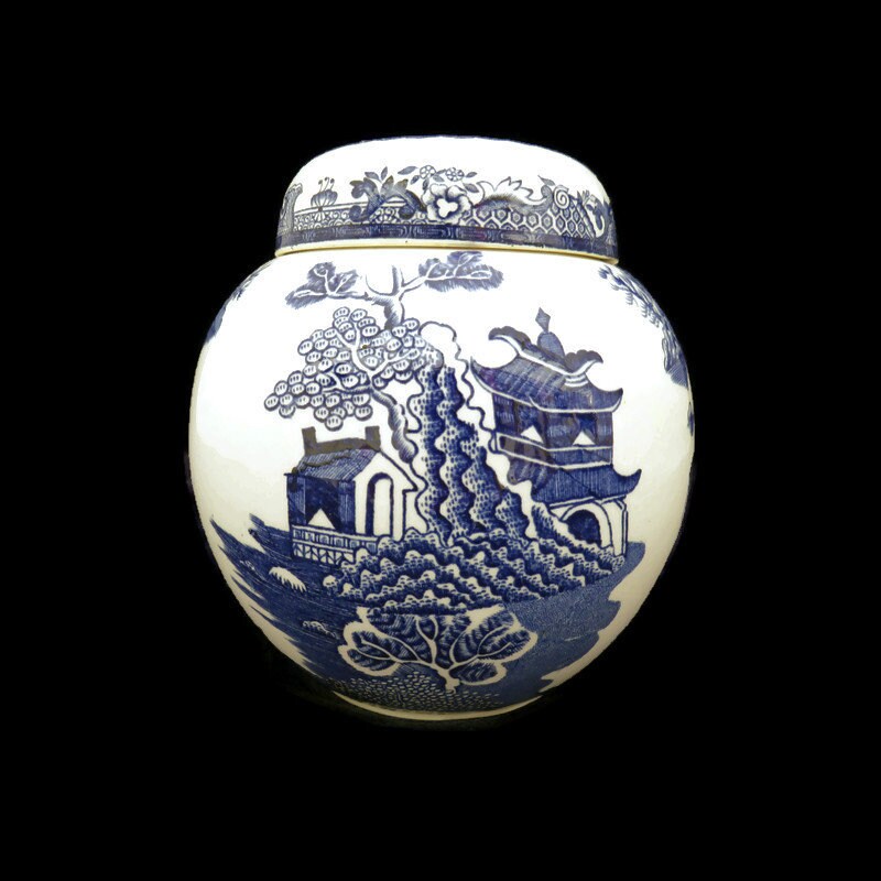 MASON'S ''WILLOW'' PATTERN GINJER JAR BEAUTIFULLY DECORATED WITH THE TRADITIONAL WILLOW PATTERN.