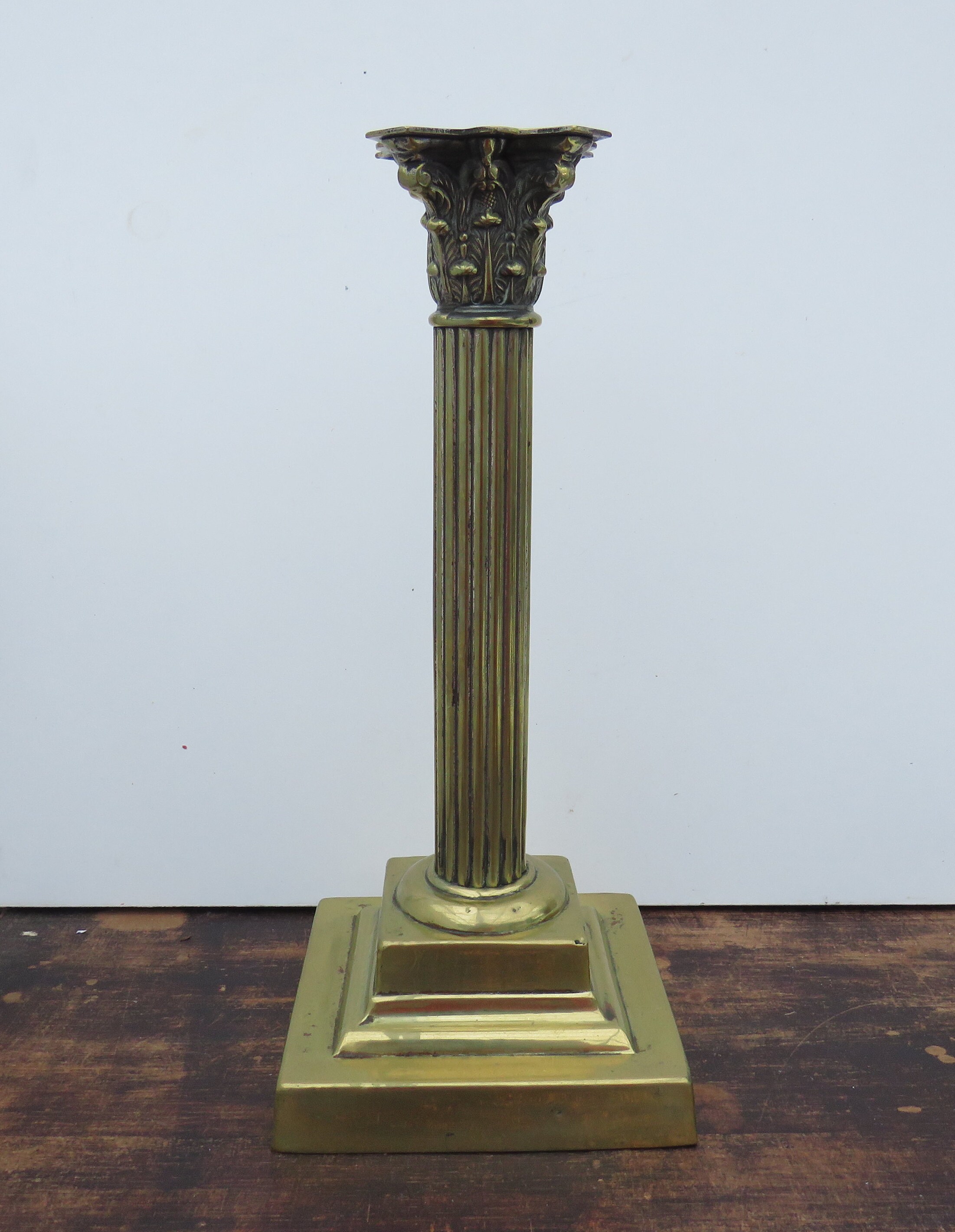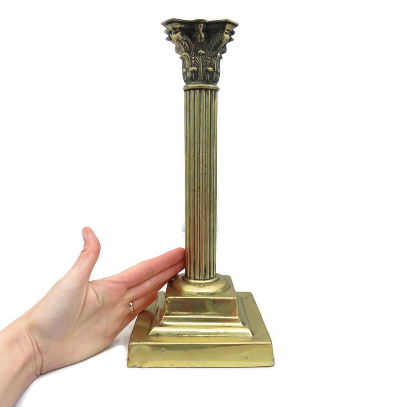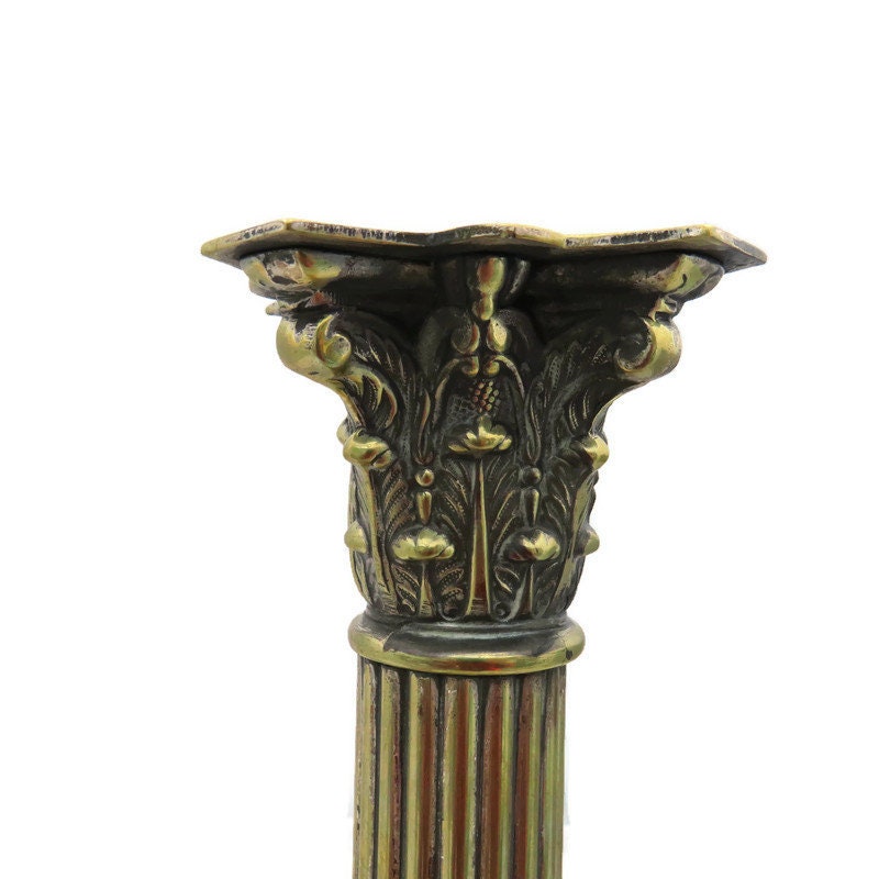 LARGE ANTIQUE BRASS GREEK CORINTHIAN COLUMN .