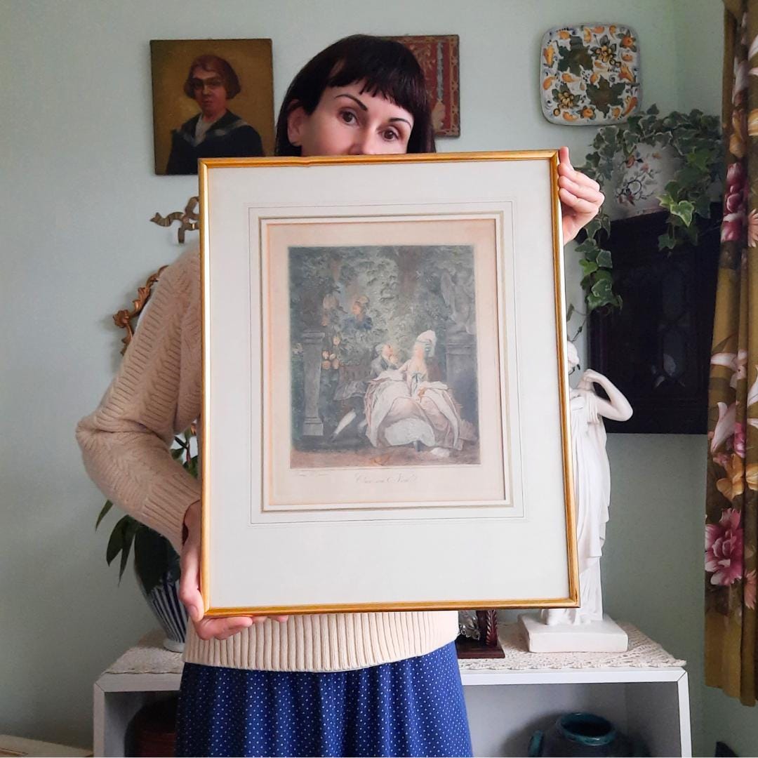 Antique Rococo Coloured Etching After Moreau Le Jeune Title Oui Ou Non !