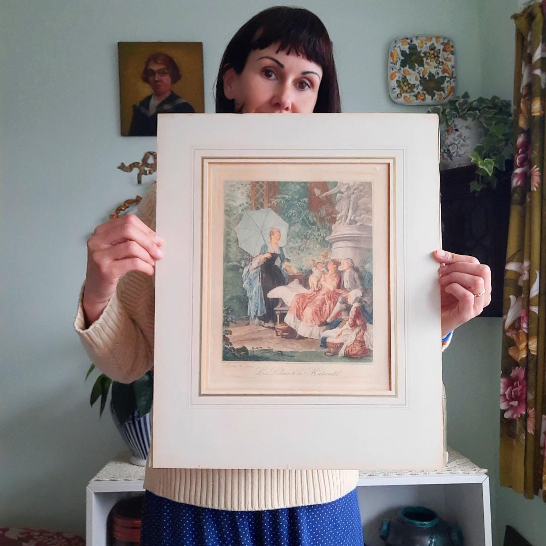 Antique Coloured Etching After Moreau Le Delices de la Maternite !
