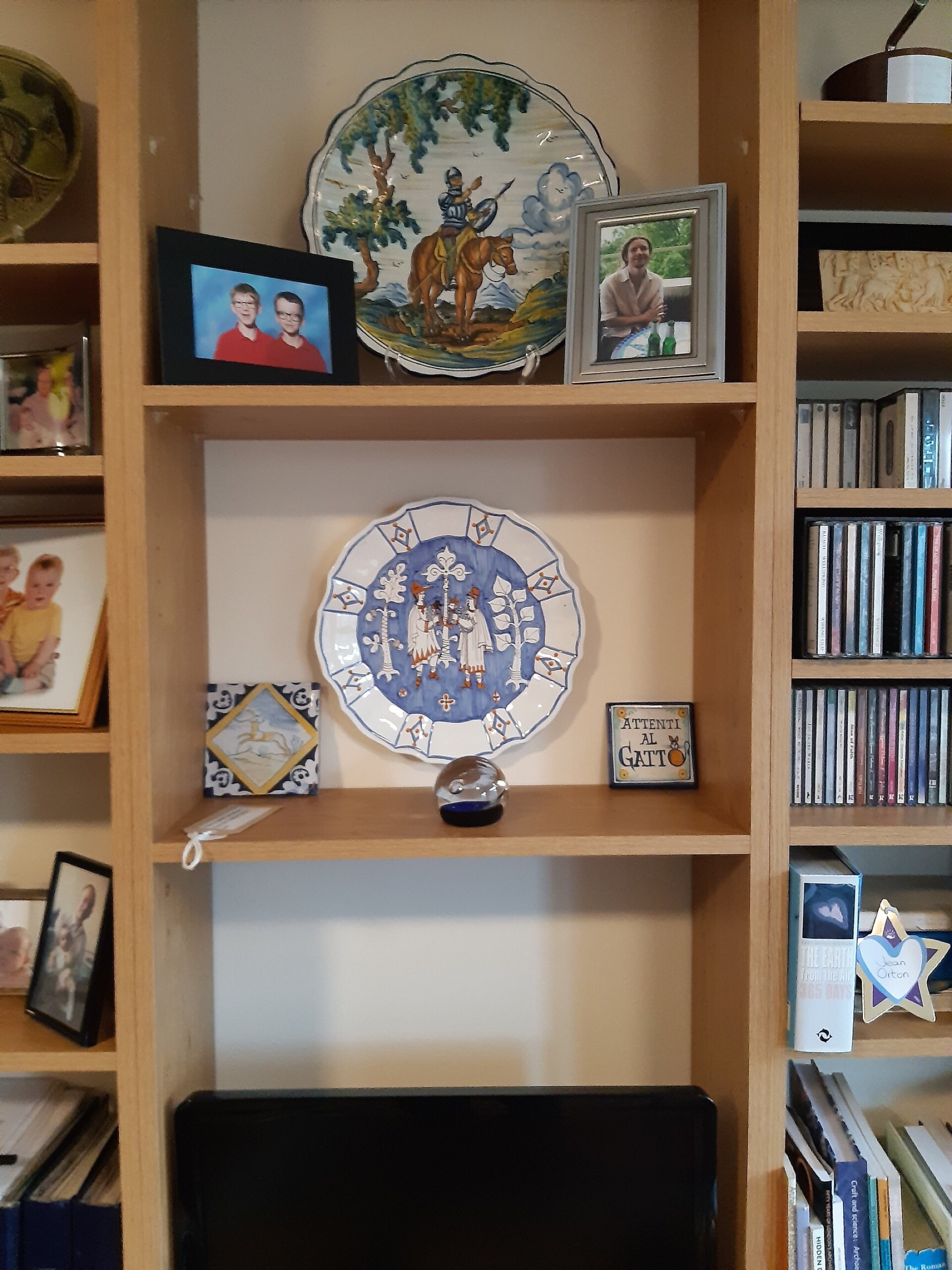 THIS BEAUTIFULLY HAND-PAINTED WALL PLATE BY ITALIAN ARTISANS WOULD ADD A LOVELY MEDITERRANEAN TOUCH TO YOUR HOME AND IT'D MAKE A LOVELY GIFT FOR A LOVED ONE .