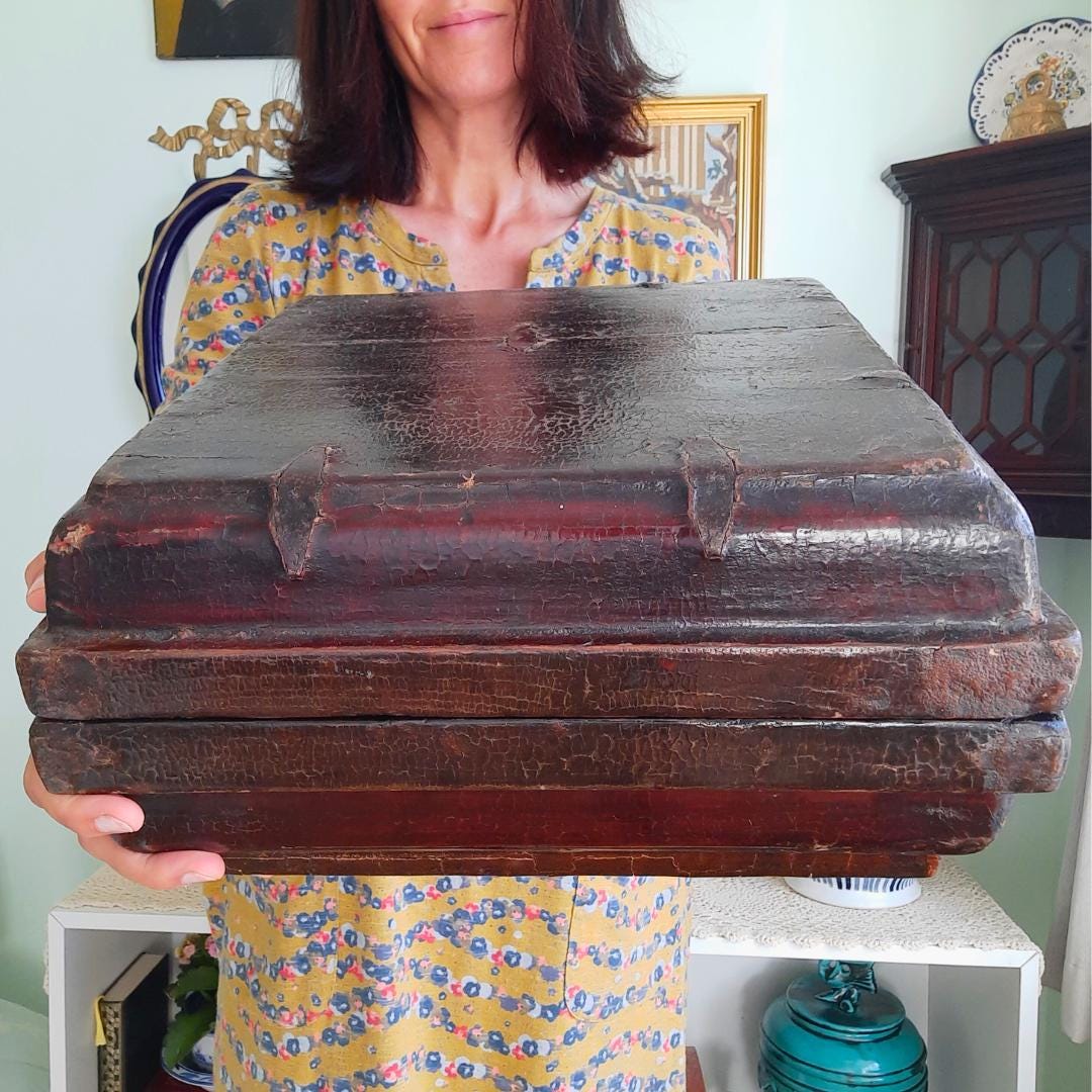 Antique Large Chinese Lacquered Lidded Wooden Box From Shanxi Province, Chinoiserie Decor
