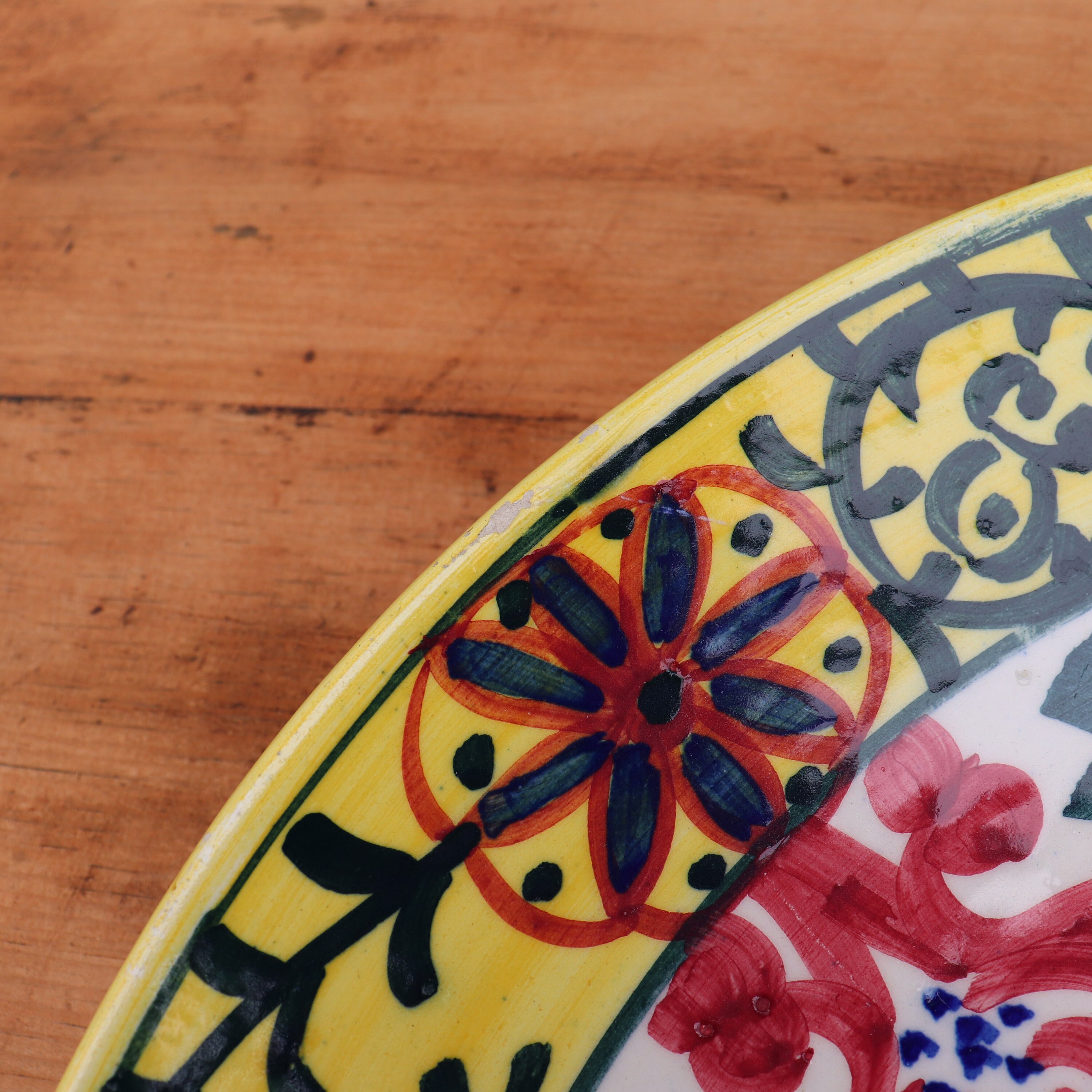 LARGE SPANISH HAND PAINTED CERAMIC WALL PLATE .