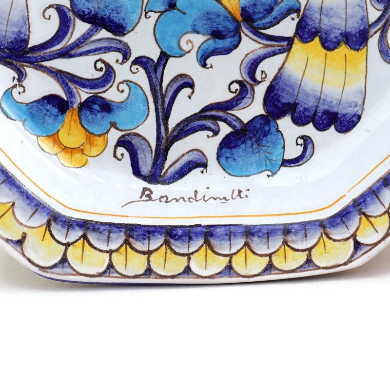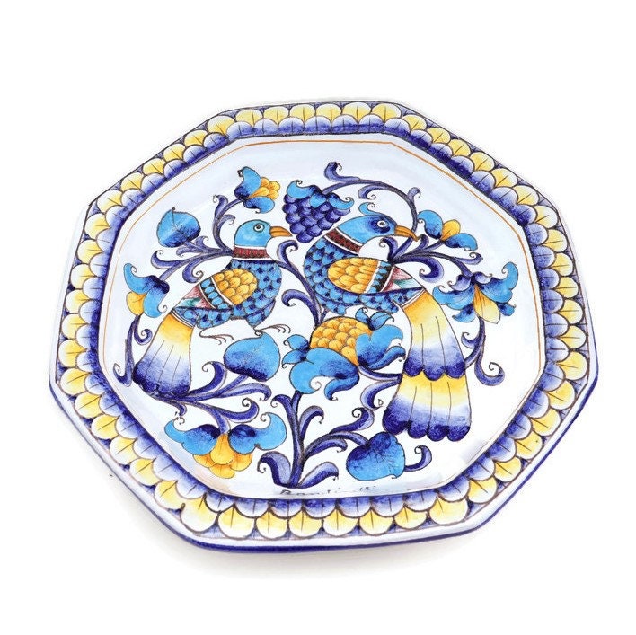 THIS BEAUTIFULLY HAND-PAINTED WALL PLATE-BOWL BY ITALIAN ARTISANS WOULD ADD A LOVELY MEDITERRANEAN TOUCH TO YOUR HOME AND IT'D MAKE A LOVELY GIFT FOR A LOVED ONE .