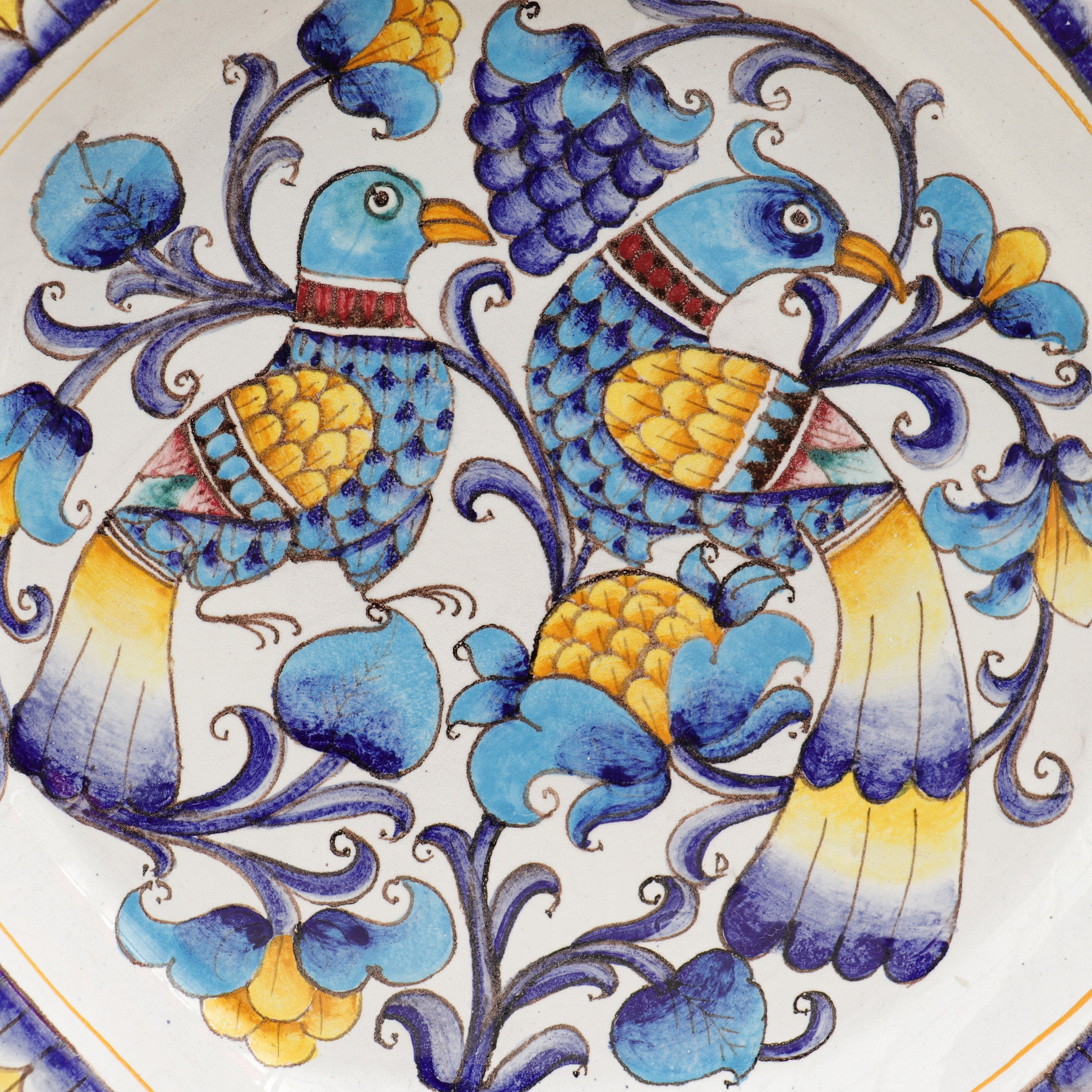 LARGE ITALIAN CERAMIC WALL PLATE-BOWL WITH HAND PAINTED BIRDS ,FIRENZE .