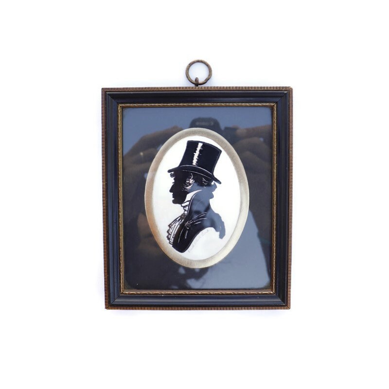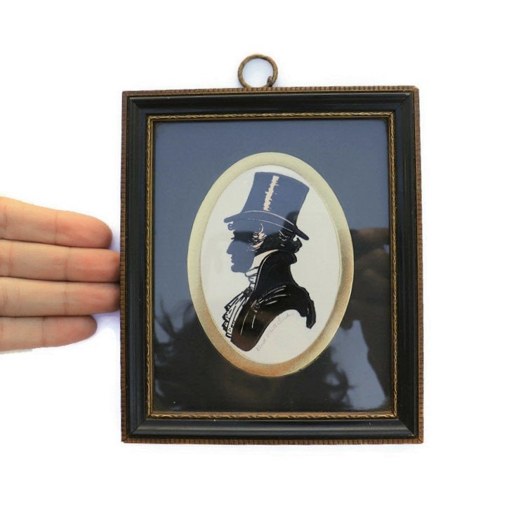 The name of this picture is Mr Lawrence , and is part of a series of 20 silhouettes by Enid Elliott Linder .The beautiful raised finished was achieved by master craftsmen . Each one was separately hand tinted , and then, signed by the artist. Traditionally framed in the finest wood Higarth moulding.