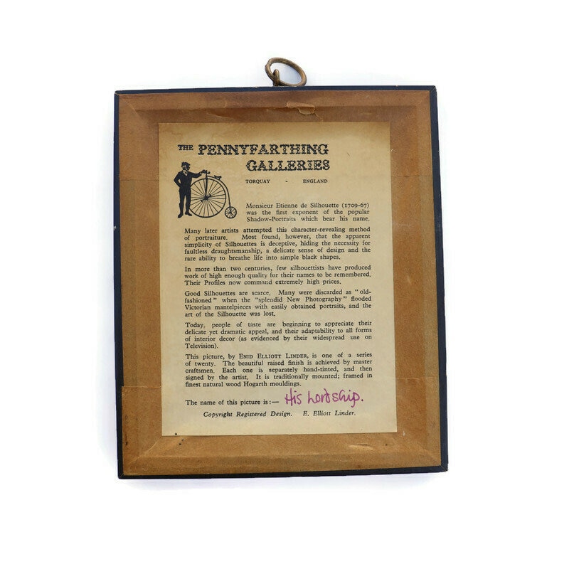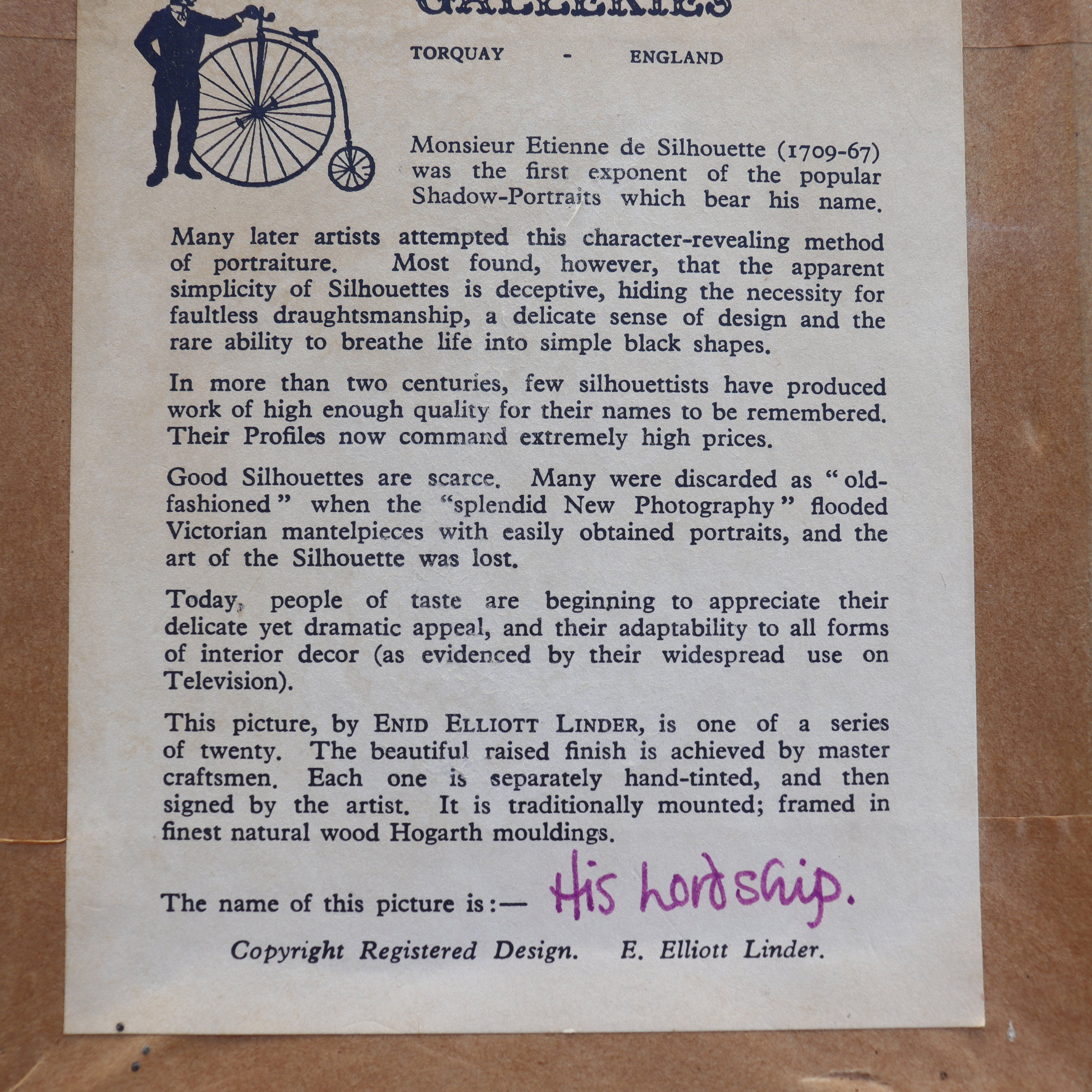 The PENNYFARTHING GALLERIES By Enid Elliott Linder Silhouettes, His Lordship..